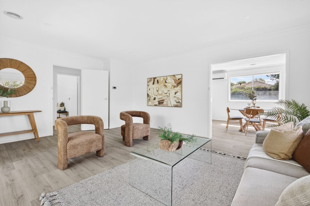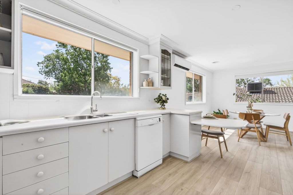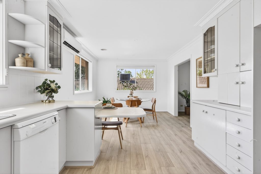 Inside, this family home is beautifully refreshed and entirely move-in ready. Morning light floods the east-facing living area, creating a warm and inviting space that flows effortlessly to a sun-drenched terrace – perfect for weekend entertaining or relaxed family evenings. The open-plan kitchen and dining area form the heart of the home, thoughtfully updated with brand new appliances, lighting, flooring and finishes to deliver a turnkey experience from day one.