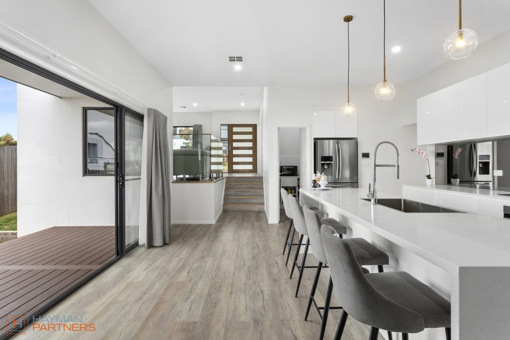 As soon as you step inside, you’ll be greeted by an abundance of natural light and a warm and inviting natural colour palette throughout. The kitchen is the heart of the home and flows easily to the outdoor deck, making entertaining a breeze. With stainless steel appliances, waterfall stone benchtops, a stunning mirrored splashback, large walk-in pantry and plenty of storage space, you’ll love spending time in this beautiful home.