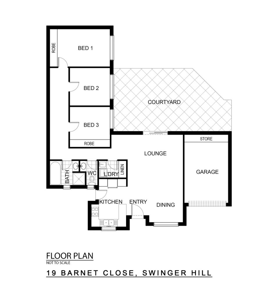 A rare opportunity to secure an immaculate freestanding single level, separately titled townhouse in the heart of Swinger Hill. Setting foot into 19 Barnet Close you can feel the sense of warmth and comfort. A versatile floor plan, this wonderful sundrenched home provides for easy low maintenance living and all year round comfort. Flowing out through double glazed windows youll find the north facing rear courtyard ideal for summer entertaining or gardening. Accommodation consists of three generous size bedrooms the main with a built in robe. Featuring a recently renovated kitchen and new floorboards throughout simply move in and enjoy. The home includes a separate bathroom and toilet, two door garage with a separate workshop, separate laundry, evaporative cooling plus electric panel heating .