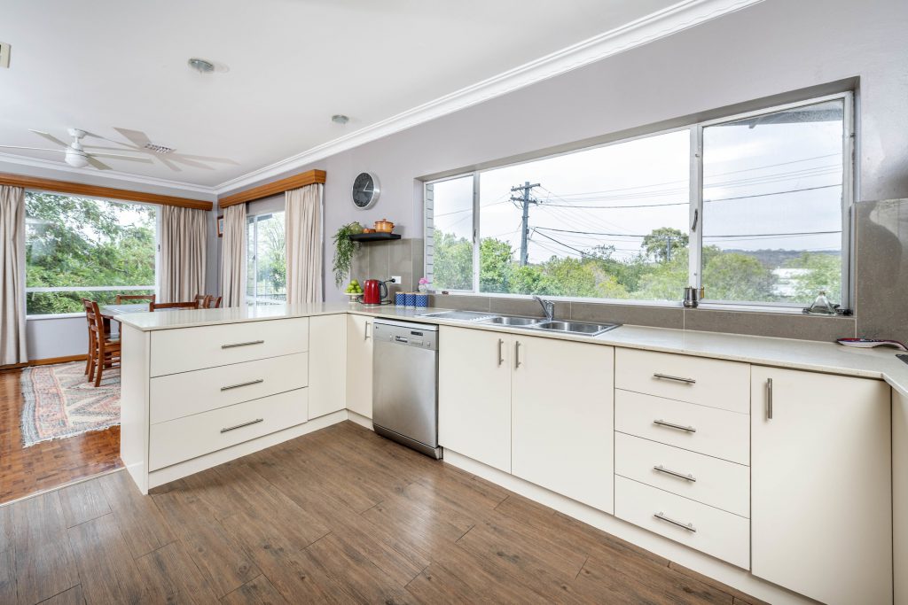 Accommodation includes four bedrooms, all with leafy outlooks. There is also an oversized self-contained flat located downstairs with laundry, kitchenette and a lounge space. This area could easily double as a home office, au pair residence, inter generational living area or rental opportunity. There is also an oversized double garage with ample off street parking for boats, caravans or trailers.