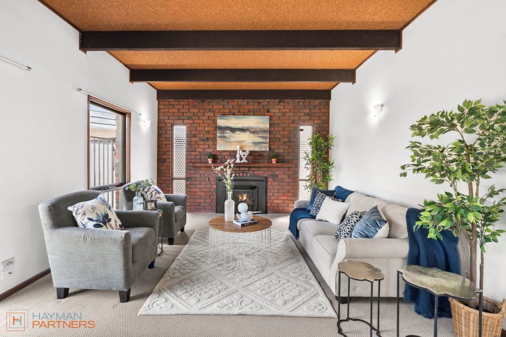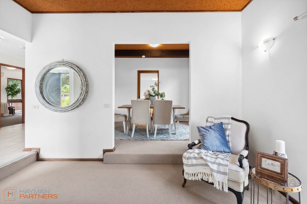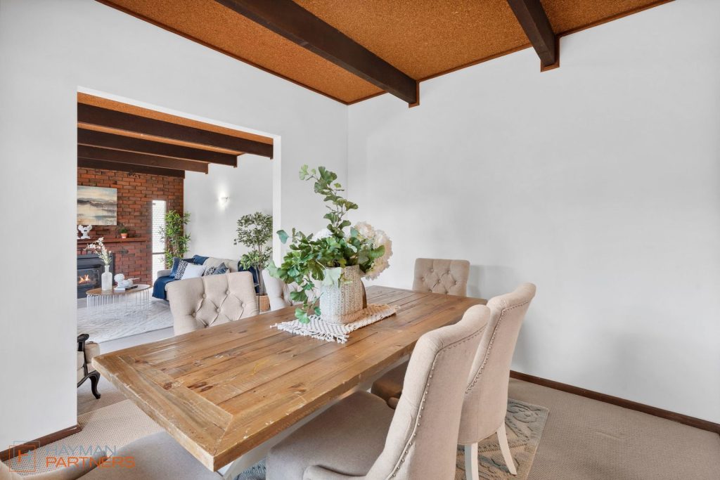 • Generous formal living and dining area with gas fireplace and feature raked ceilings