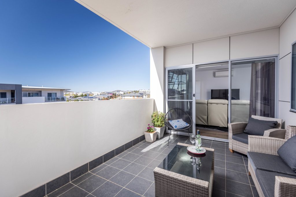 The large lounge/dining area, with reverse cycle air-conditioning & ceiling fans is filled with an abundance of natural light, opening out onto an incredibly spacious balcony, which comes with a small Webber BBQ, perfect for entertaining on those warm summer nights!