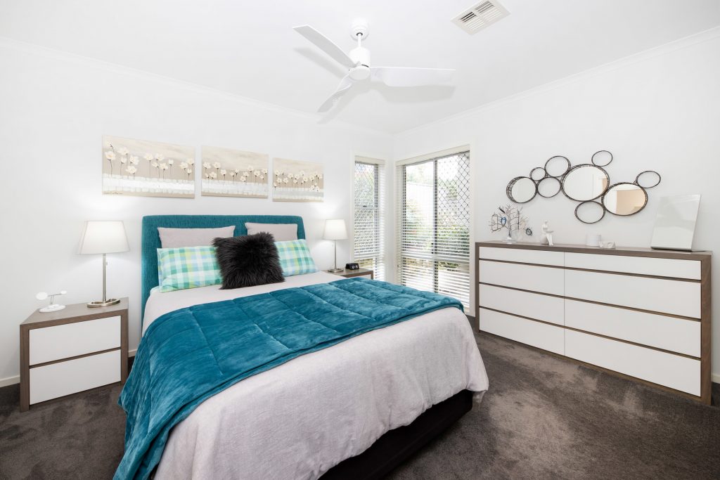 Main bedroom with ensuite, walk in robe and ceiling fan