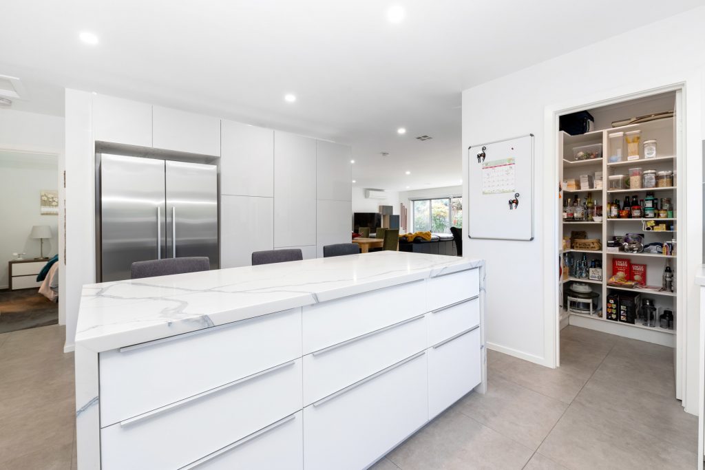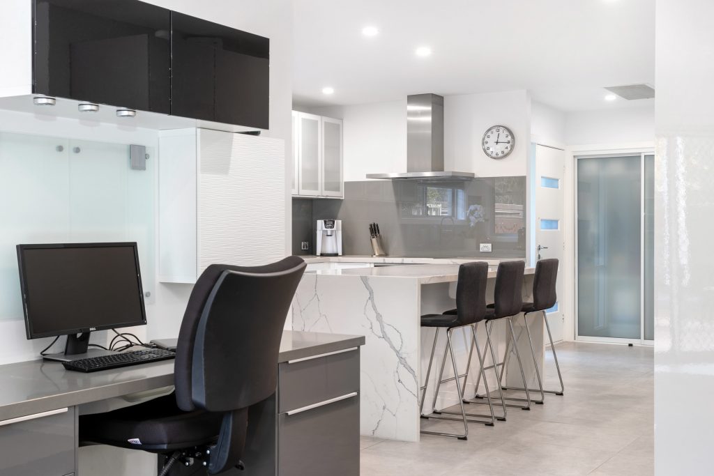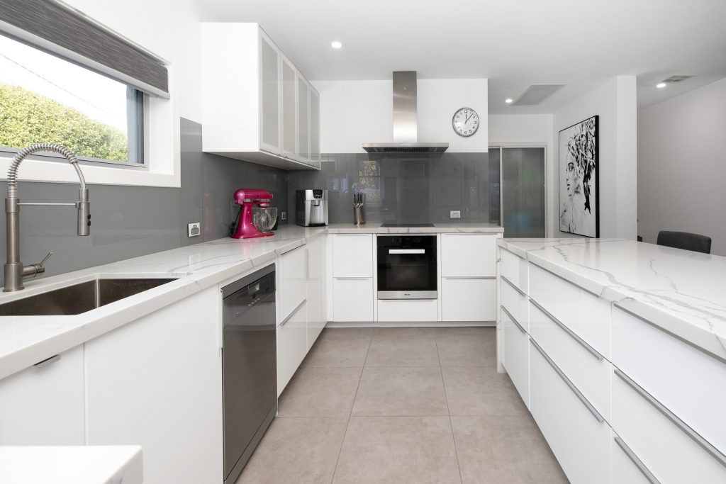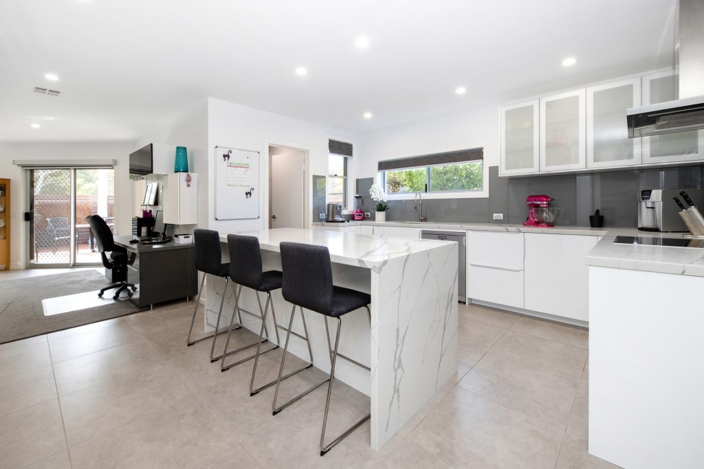 Modern kitchen with Miele appliances, stone benchtops and island bench