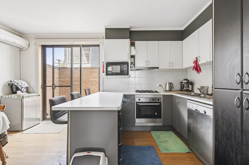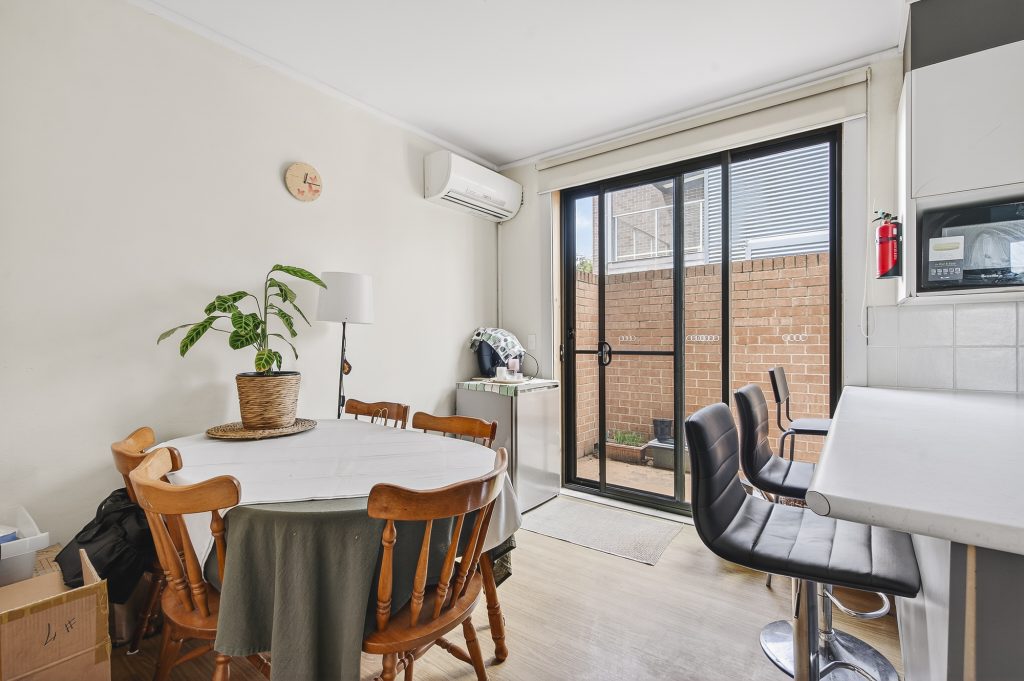 The air-conditioned living area flows seamlessly to a private balcony, while a separate air-conditioned dining space adjoins the well-appointed kitchen. Outdoors, a private courtyard provides additional room to relax or entertain, completing a home that perfectly balances convenience and lifestyle.