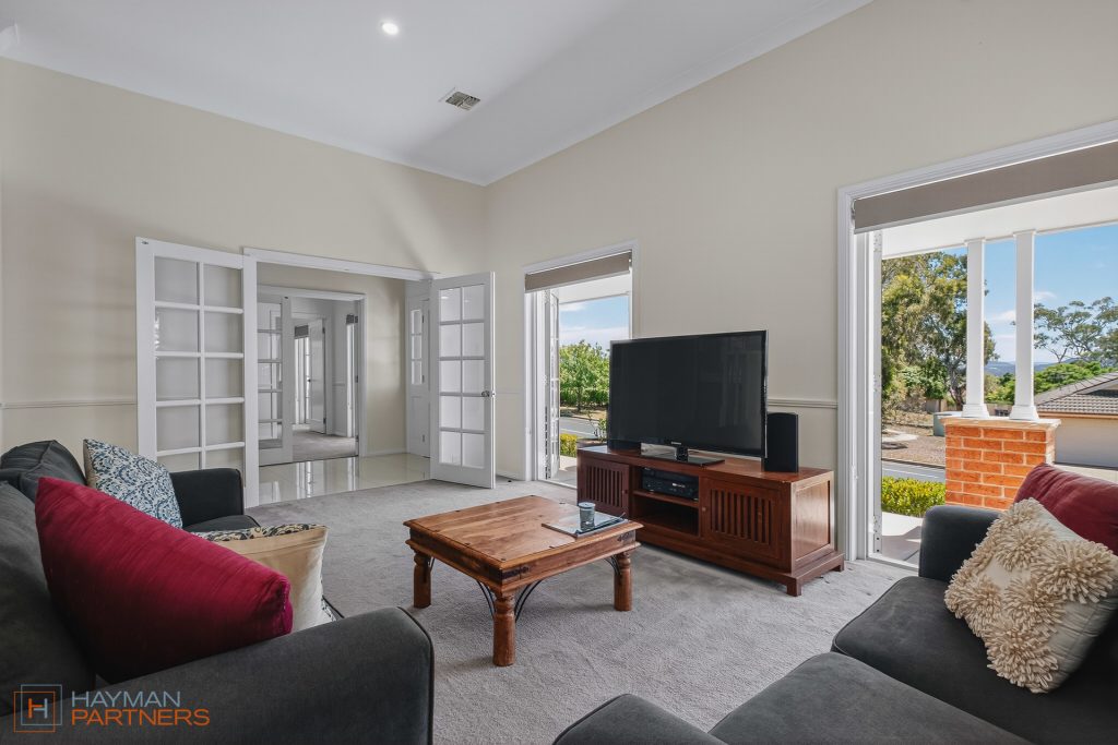 City skyline vistas of the Nations Capital including the iconic Parliament House, Telstra Tower and Black Mountain and even the tip of the Captain Cook water fountain on Lake Burley Griffin – fireworks can be enjoyed from the comfort of home. Only a twenty minute drive to the bustling Canberra city work hub. A caravan or boat can conveniently and discreetly be stored and secured for your next adventure with the large concrete slab with a separate driveway and gate.
