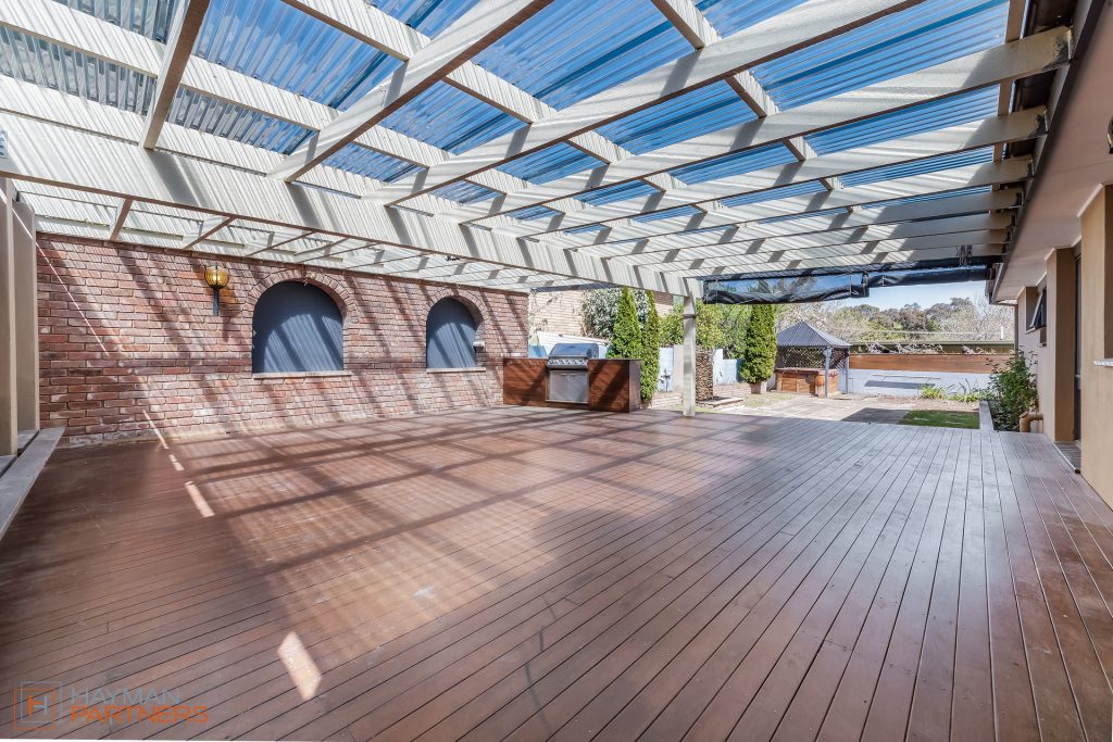 The two storey floor plan offers great segregation with and large rumpus /tv room upstairs, two generous bedrooms serviced by updated bathroom. The lower level consists of a spacious open plan informal living area that connects seamlessly to the updated kitchen. The separate meals area overlooks the large elevated rear deck that is covered for all year round entertaining . There are three bedrooms downstairs serviced by an additional bathroom. Mature easy care gardens surround the home. A family friendly home in a sought after location all within walking distance to local shops, schools and Cooleman Court.