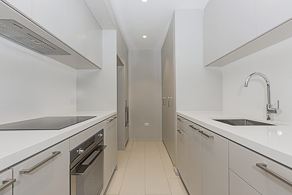 * Galley-style kitchen with stone bench tops, ceramic cook top, dishwasher plus extra microwave oven