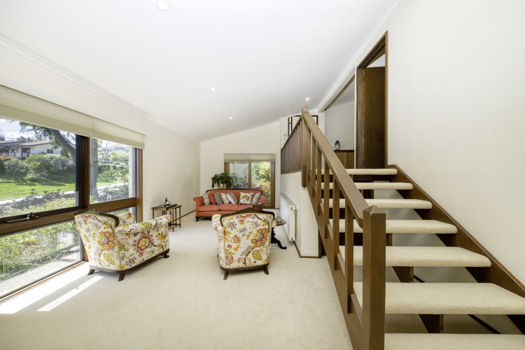 The architecturally designed home features floor to ceiling windows, taking full advantage of the natural light in both the formal and informal living areas. The spacious formal lounge and dining area flow directly to the modern kitchen and meals area all overlooking the rear landscaped gardens. Downstairs features a stunning sitting room with an adjoining bedroom and half ensuite, adding tremendous flexibility for families needing space to spread out. Accommodation is provided by four bedrooms all with built in robes, supported by an updated bathroom.
