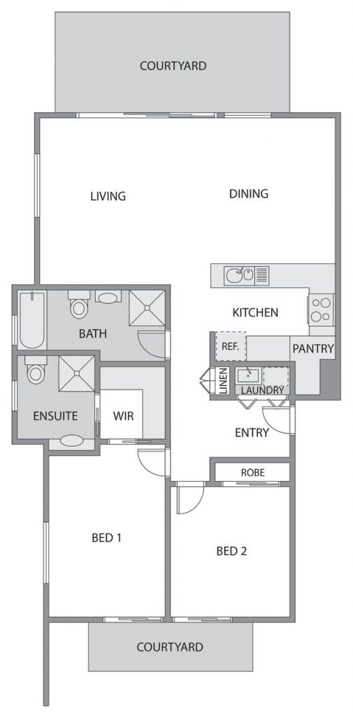 In a convenient location a ground floor apartment complete with large covered courtyard overlooking the central gardens. Excellent condition, clean lines and high ceilings throughout compliment the modern design and finish. Combined lounge and dining offer excellent space and natural light with access to the courtyard. Accommodation comprises a master bedroom with walk-in-robe and ensuite. Second bedroom also features built in robes and offers access to main bathroom. A wonderful sense of space and light, combined with the premium Inner- North location.