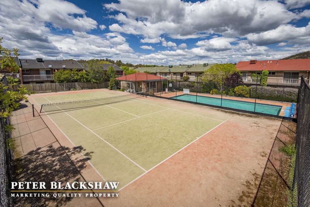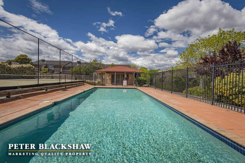 This quality built, well presented single level townhouse should be on the top of your inspection list! Located in the popular Belmont complex, this home is ideally suited for those wanting to secure a conveniently located townhouse in one of Woden Valleys most popular and vibrant suburbs, Mawson. Offering a generous 119 m2 (approx) of living space all on one level – which includes a spacious open plan lounge and dining area, three bedrooms, the segregated master with walk-in wardrobe and ensuite. The enclosed and private courtyard to the rear allows the opportunity to entertain and enjoy the outdoors all year round with the huge covered pergola, the complex also includes a function room, tennis court and swimming pool! Located a short walk away from Southlands Shopping Precinct and close to the Woden Town Centre make this the ideal investment or live in opportunity. Very rare offering to the market. Summary: