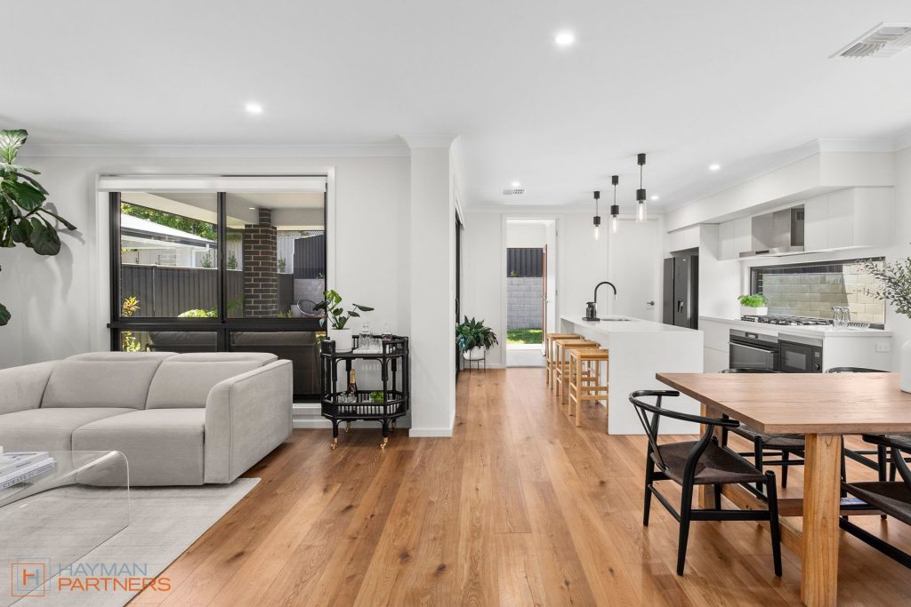 • Light-filled open plan living, dining and kitchen with high ceilings