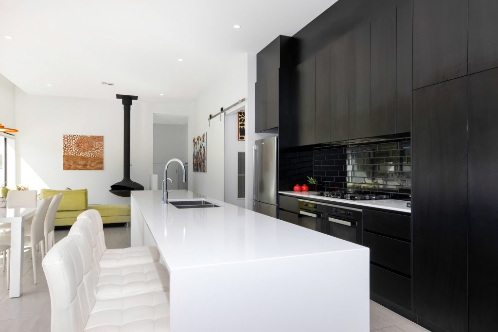 Modern kitchen with island bench and Miele appliances (2 ovens)