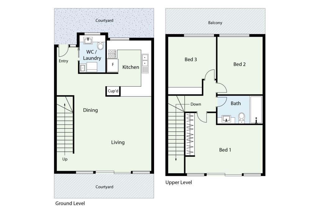 Situated in this quiet peaceful townhouse complex, positioned off the street and at the end of the row an excellent modernised home with dual courtyards. This Willemsen designed townhouse was ahead of its time and is full of character, with an abundance of natural light and a refreshed interior. The open plan design offers a perfect flow from the updated kitchen, living, straight to the gorgeous outdoor area. Accommodation includes three generous bedrooms, segregated from the downstairs living area.