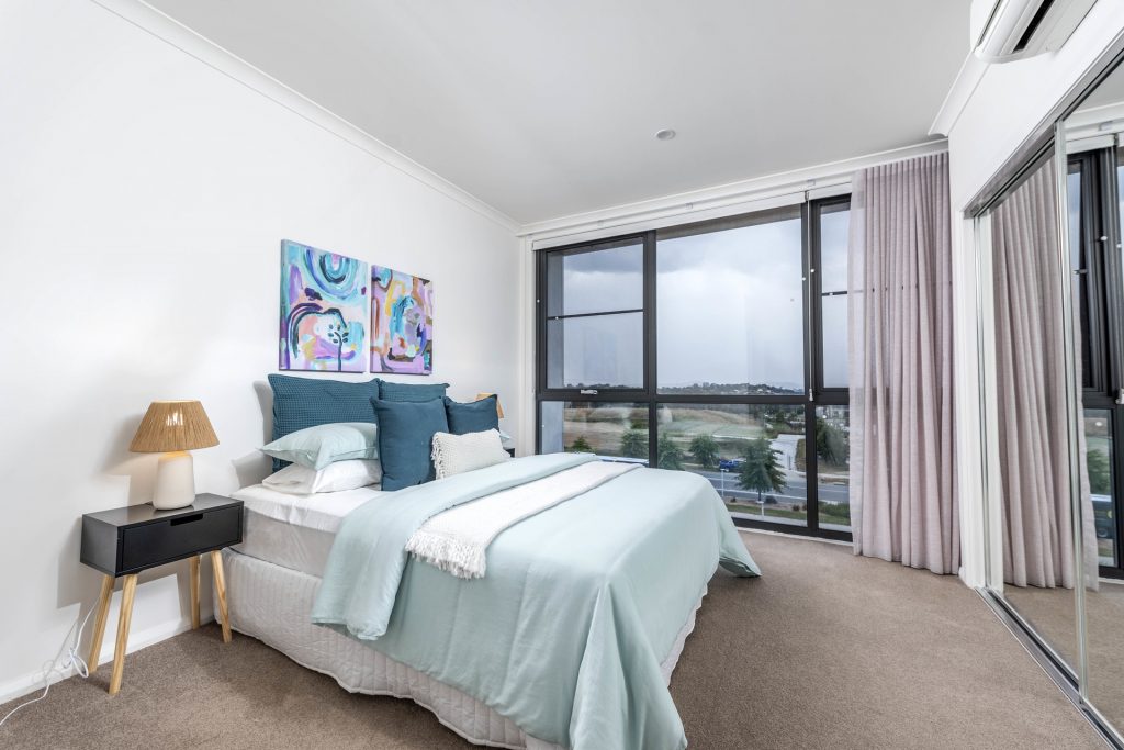 – Master bedroom with built-in robe and fantastic views over Gungahlin and Black Mountain