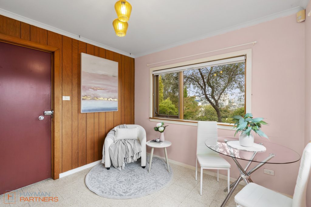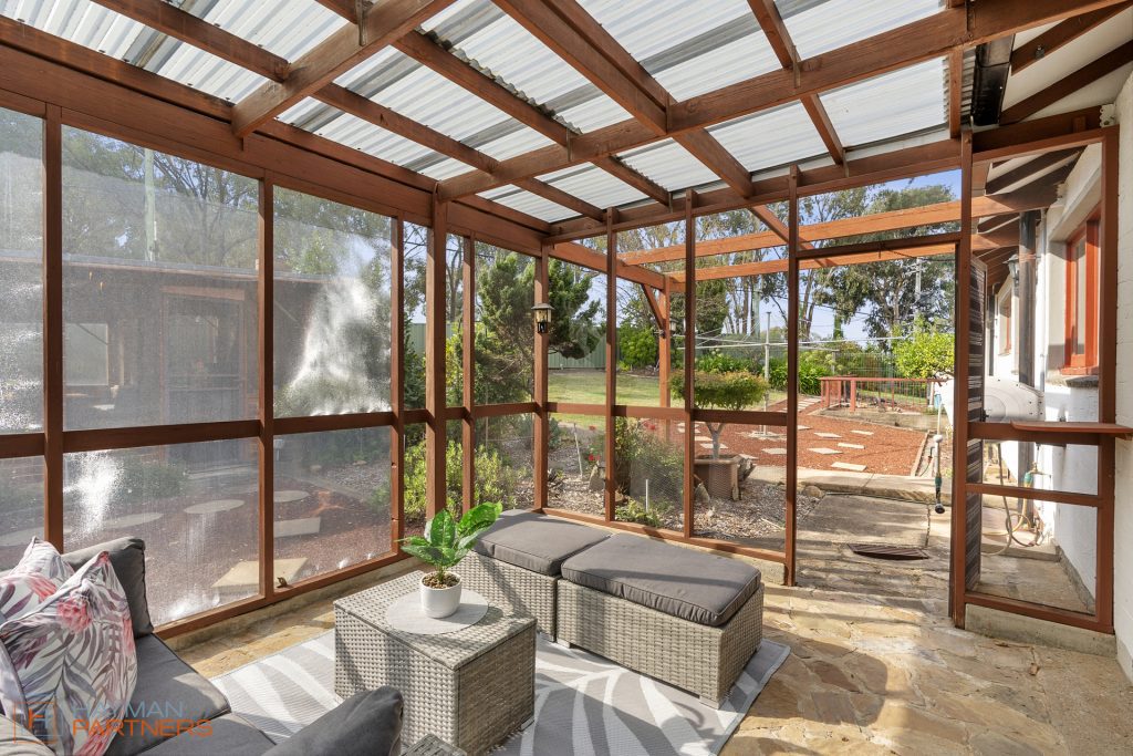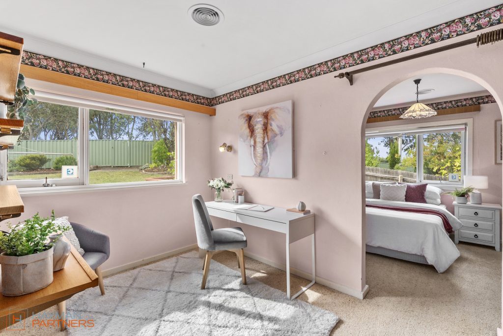 Upon entering the home you are welcomed by beautiful parquetry flooring and warm timber features in the foyer that leads into the open plan living room with stunning views across the Woden Valley. Flowing from the living room is the dining room that connects to one of two sunrooms and the functional kitchen. The kitchen has ample counter space and plenty of room for customization to fit your own personal style.