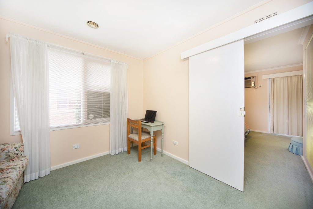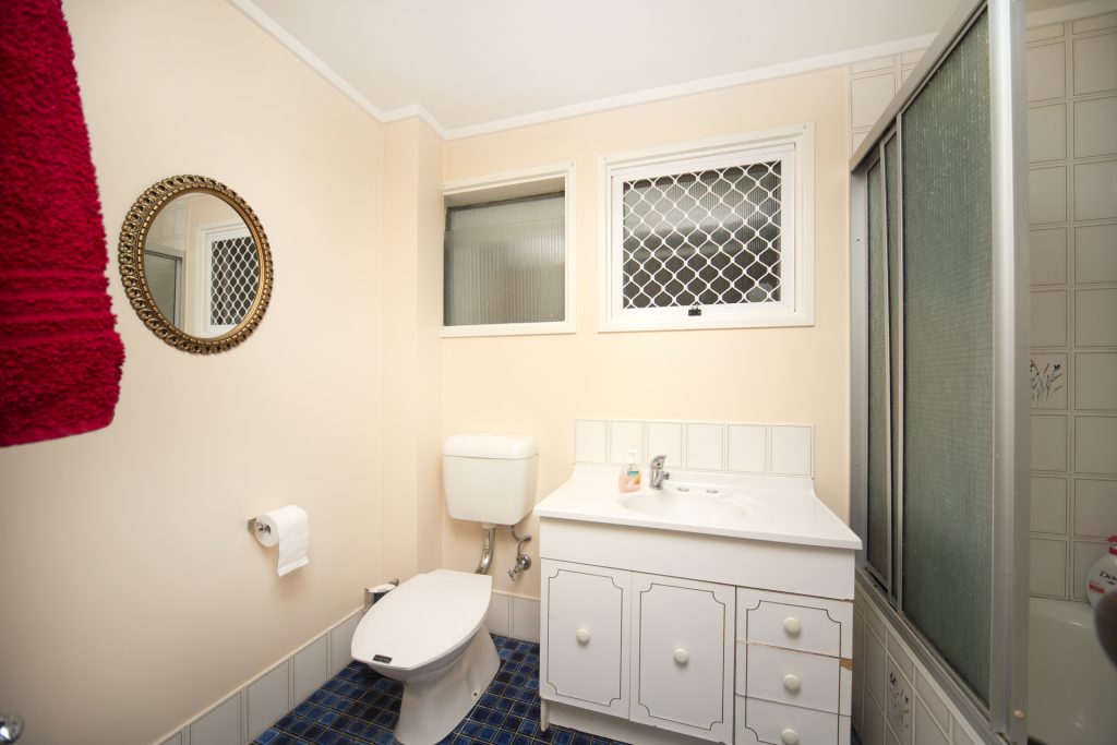 The original three-bedroom home has been converted to two bedrooms with a study, the master has a large ensuite. Other features include a spacious bathroom with bath tub and toilet. The laundry is separate with access to the backyard.