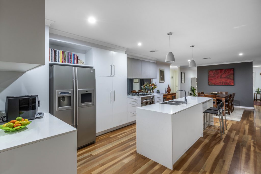 Enjoy the lifestyle from this stylish family home that makes entertaining a breeze. On one level this home is stunning in both design and the quality of finish. With four double size bedrooms and an ensuite and walk in robes to the main bedroom. There is ample room for the growing family. One of the many features is the Sydney blue gum hardwood timber floors throughout the living areas. Chefs kitchen with quality appliances. Formal and casual living rooms. Enjoy the comfort of three zoned reverse cycle heating and cooling. Covered bbq area ideal for year-round entertaining. With its private low maintenance garden, double lockup garage and convenient location, this home makes everything easy.