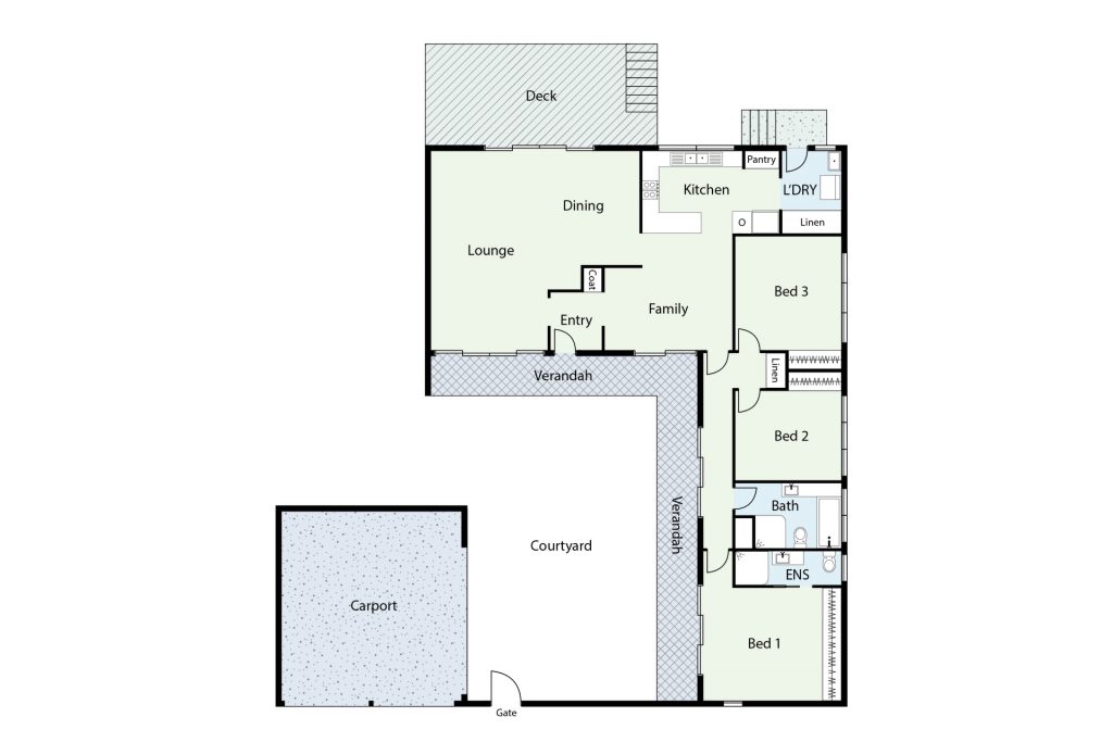 * Sheltered front verandah overlooking private courtyard garden