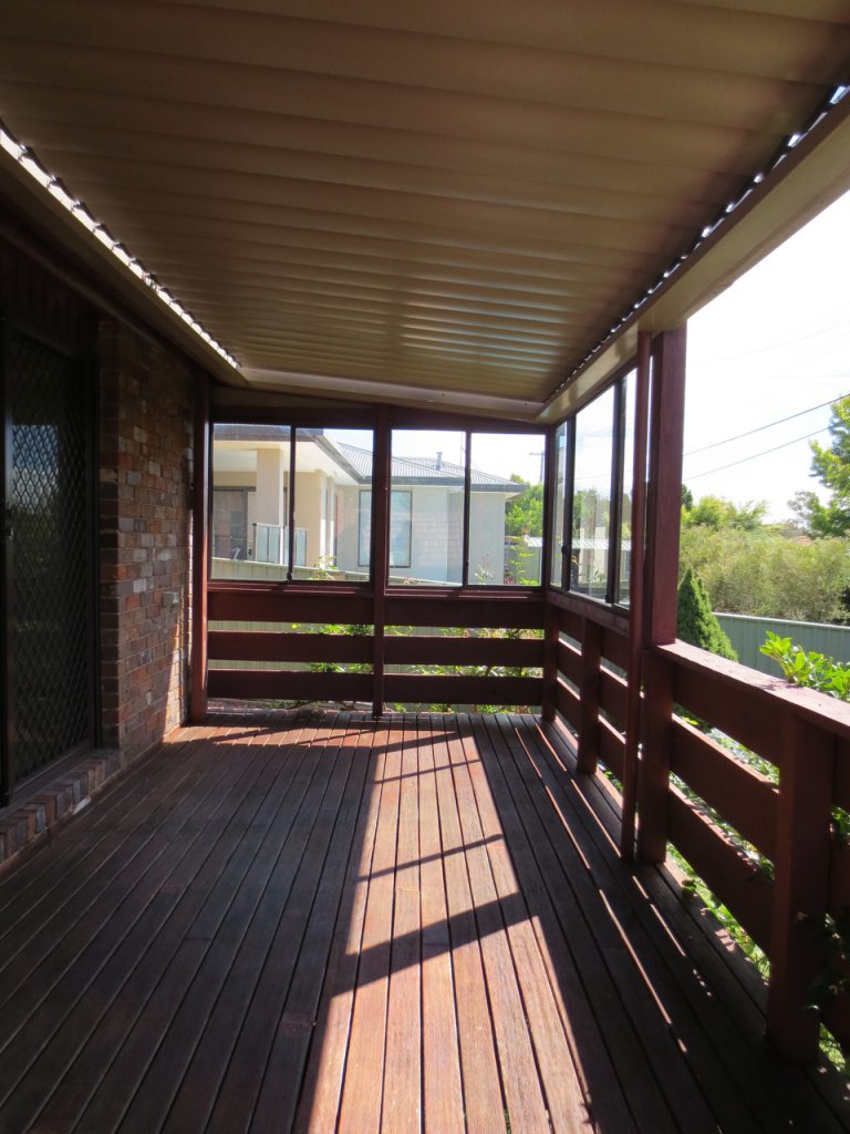 * Automatic “Vergola” sheltered rear deck leading out from living area