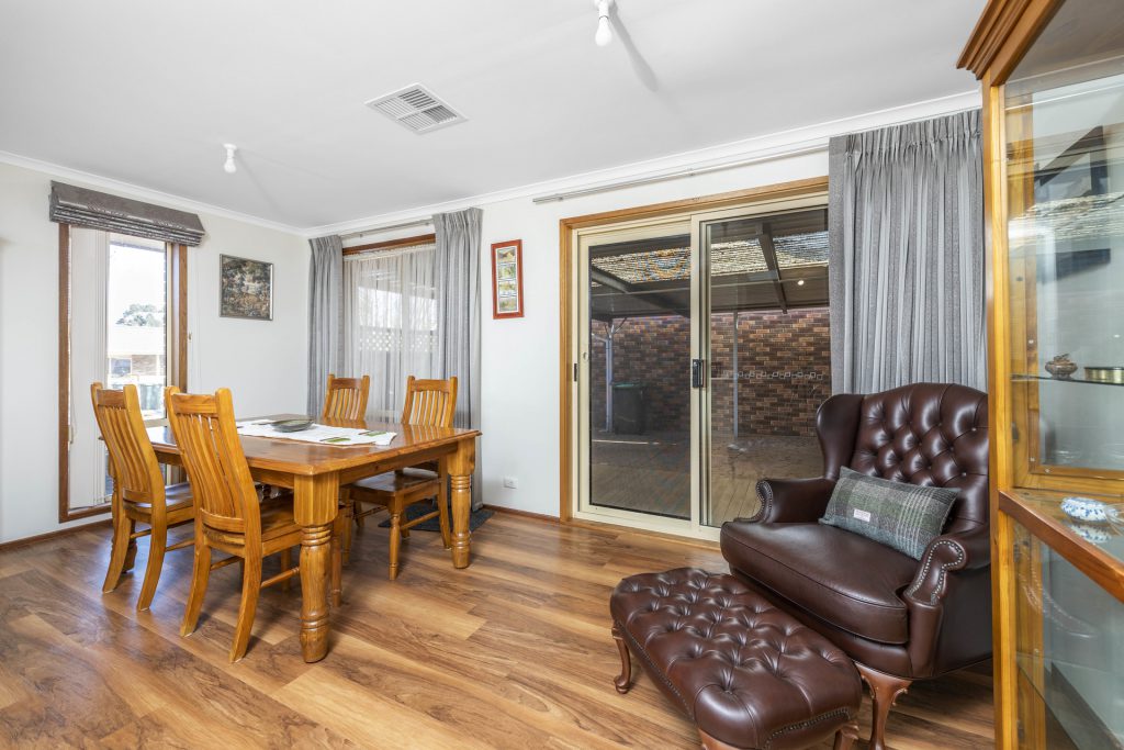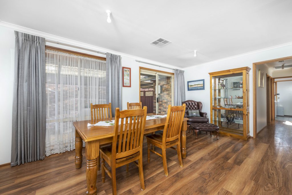 Accommodation includes three bedrooms, two with built in robes accompanied by a large bathroom with separate toilet. Living features an L shaped arrangement compromising of the living, dining and family. Off the dining area is a large U shaped kitchen with generous amount of storage, neutral décor and fitted lighting throughout the kitchen.