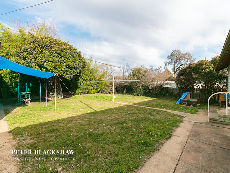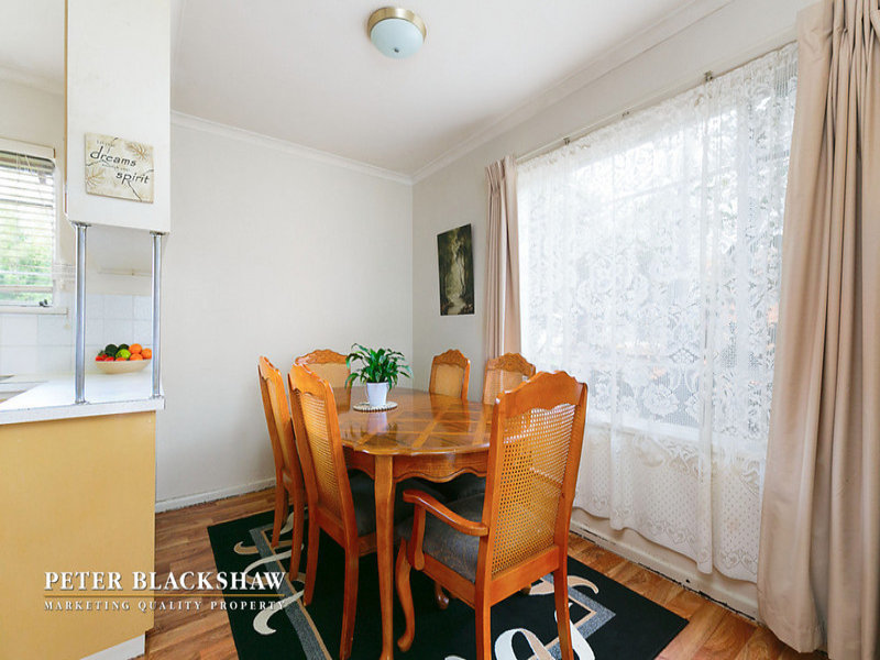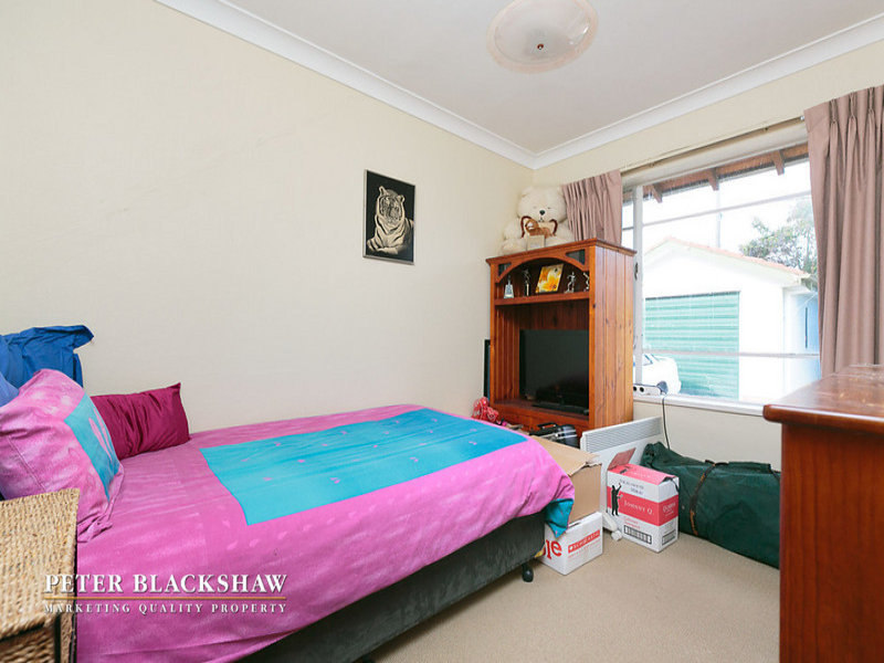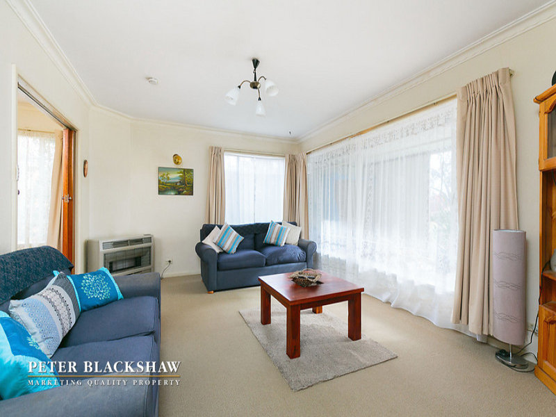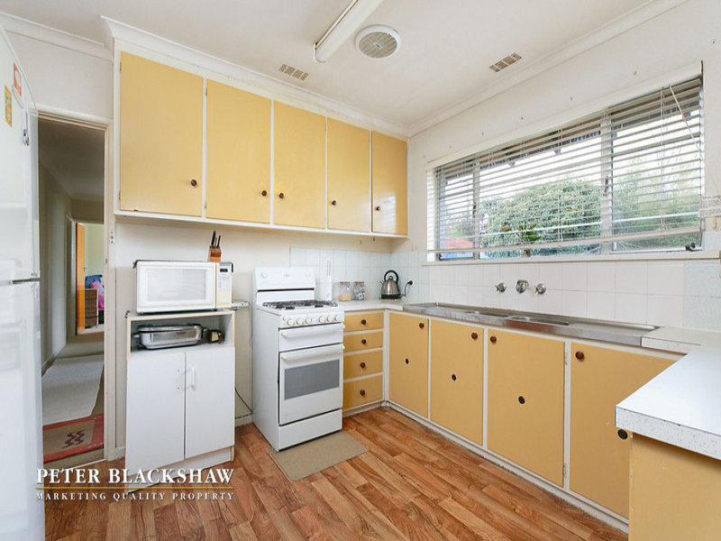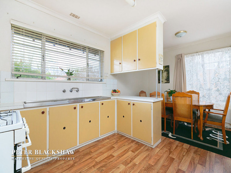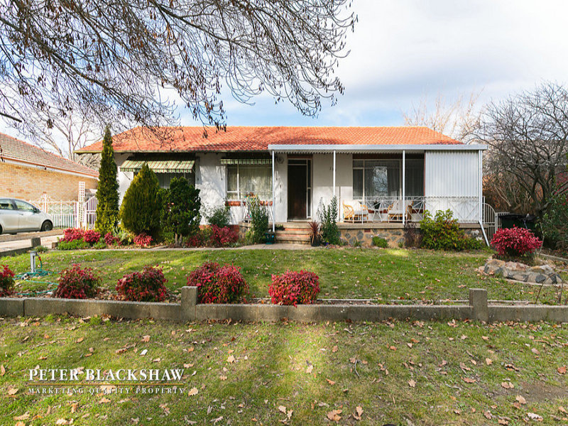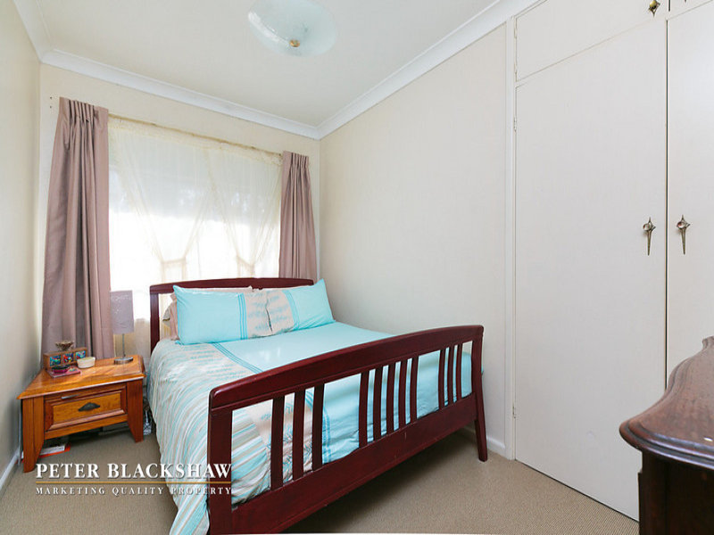 Set back from the street on an easy-care 634m2 block is this north facing privately built double brick home. Featuring a spacious sun filled lounge area with a leafy outlook to open space opposite. The large functional kitchen with adjoining meals / dining room offers potential to further improve. Accommodation includes three generous bedrooms all with built in robes supported by an updated bathroom and separate toilet. Other features include single lock up garage with workshop and gas heating. Within a short stroll to schools, churches and minutes to Dickson and Canberra City shopping precincts. A fantastic entry level home with potential to further improve or just live in as is.