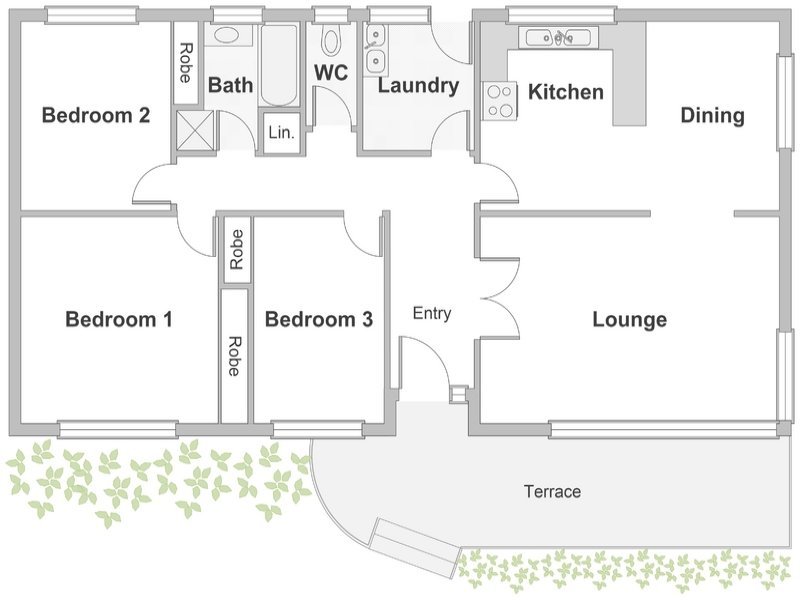 Three bedrooms, all with built in robes