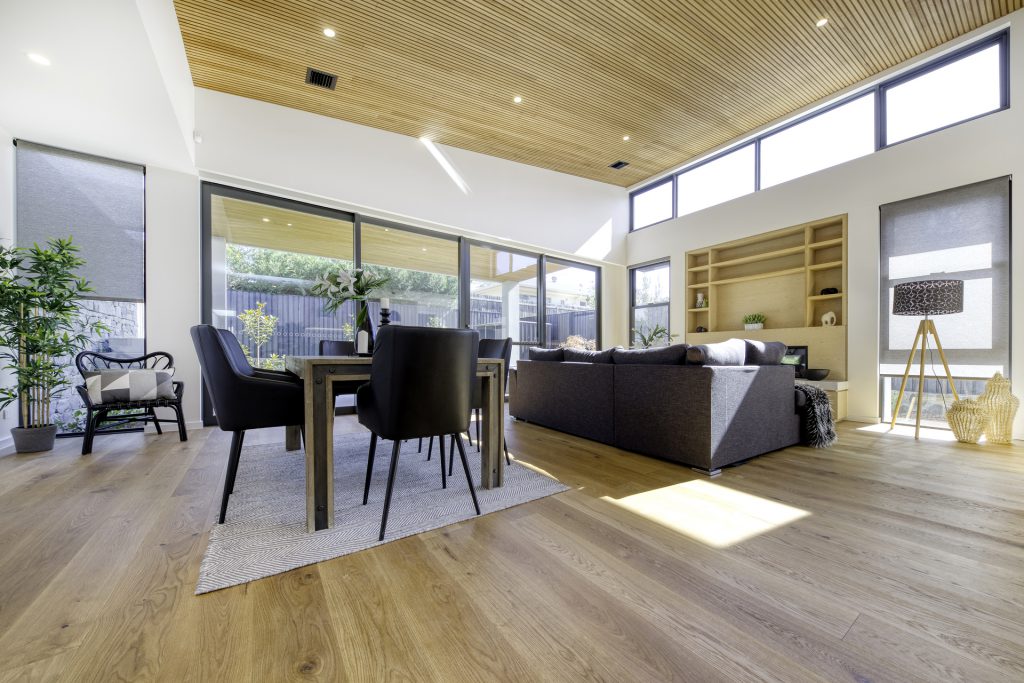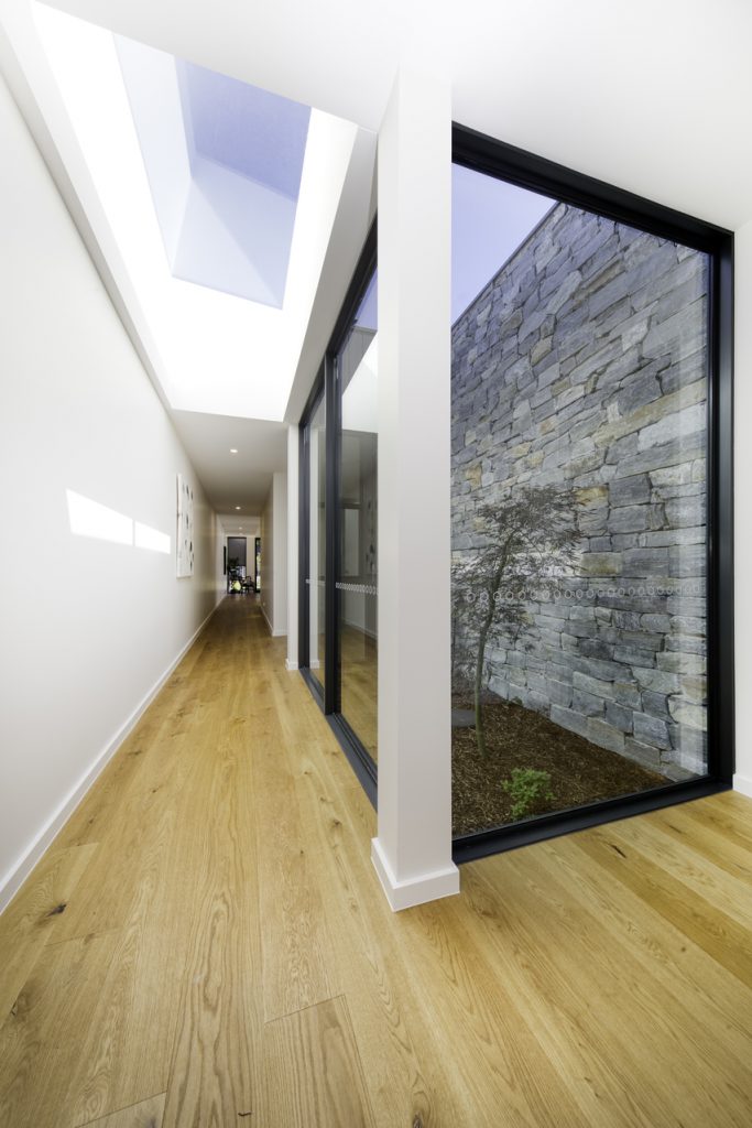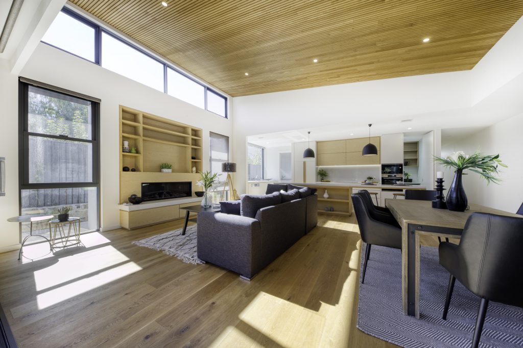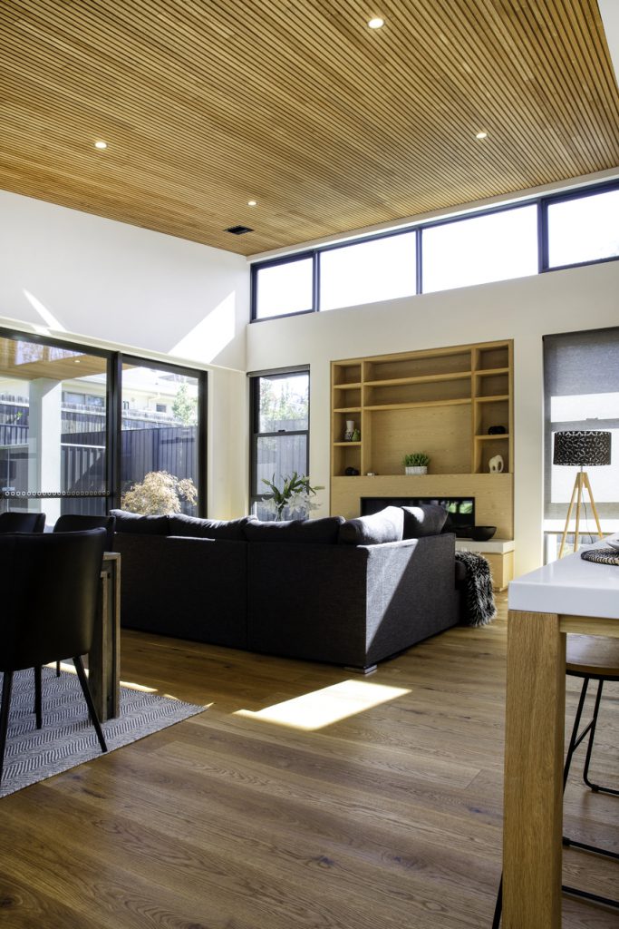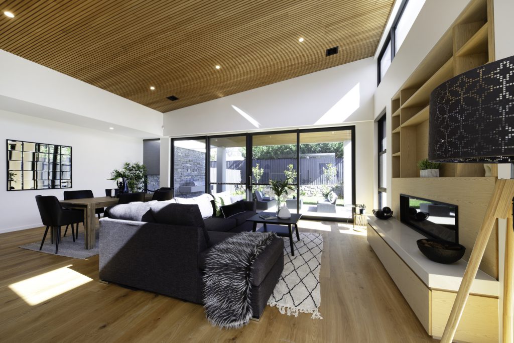 A modest streetscape understates a stylish and chic design with subtle use of skylights and timber to provide warm overtones and all the luxury inclusions from hallway atrium to a walk-in butler’s pantry. Thoughtful placement of the master suite at the opposite end to the living area means the floorplan will complement the way most people live. Highlights include the use of timber batons on the ceiling in the entertainer’s kitchen/family room flowing out to the outdoor alfresco BBQ entertaining space and the atrium breaking up the hallway.