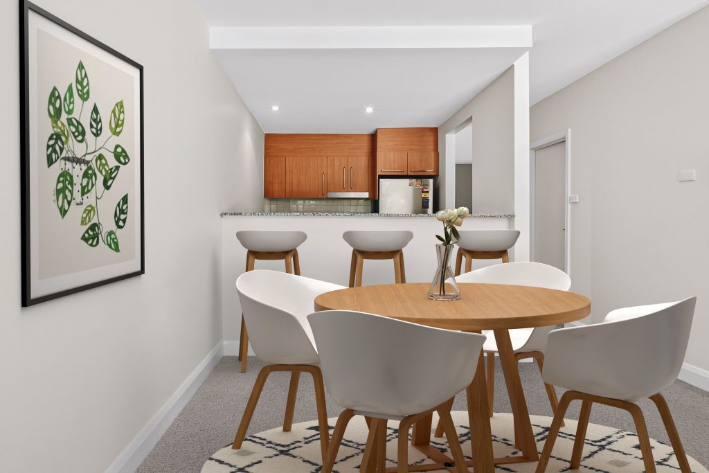 The open plan living area captures abundant northern light, extending to a private balcony with a leafy outlook across the complex gardens, while the well-appointed kitchen features stone benchtops and stainless steel appliances. Reverse cycle air conditioning provides for your year-round comfort.