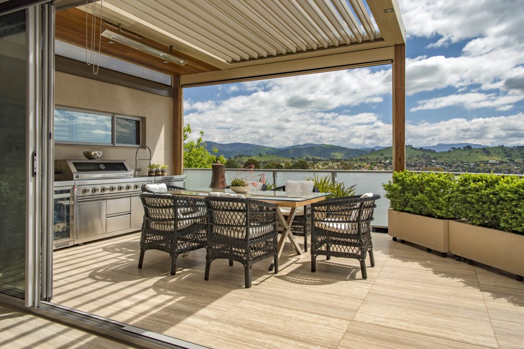 – Outdoor entertaining terrace with fully integrated outdoor kitchen, automated vergola opening roof, outdoor heaters, and Ziptrac motorised outdoor blind