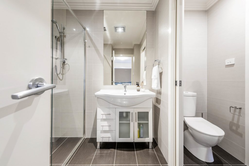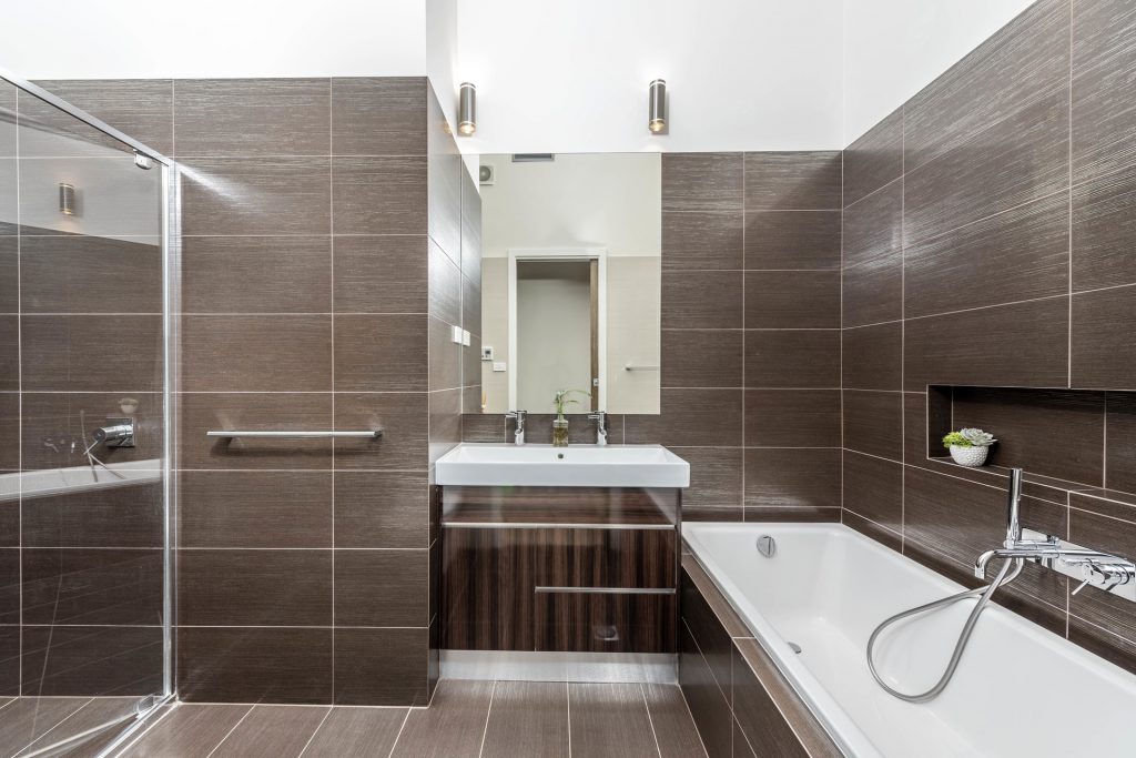 – Luxurious main bathroom with 4.6m ceilings and separate powder room