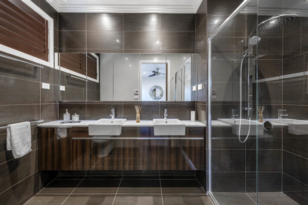 – Downstairs includes a fifth bedroom, two-way bathroom, kitchenette, separate living space, rumpus/media room and access to the second outdoor entertaining terrace