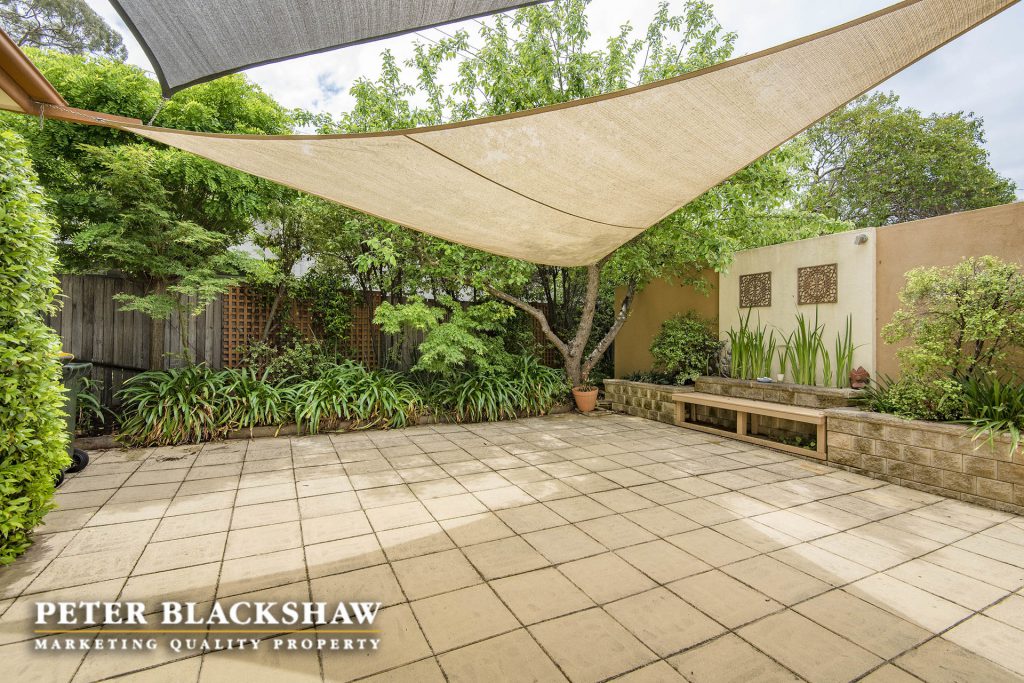 Private leafy rear patio with shade cover – lovely for al fresco entertaining