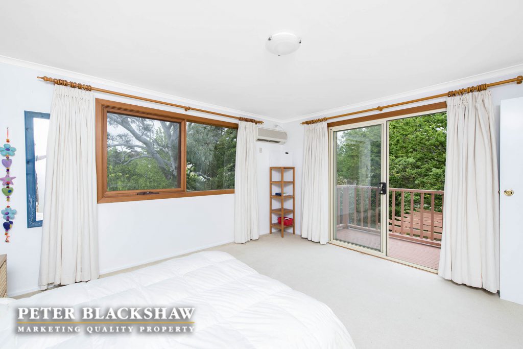 Upstairs master includes small private balcony with leafy outlook.