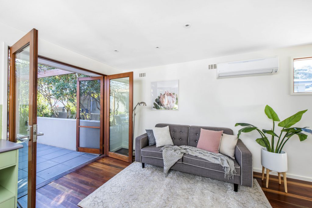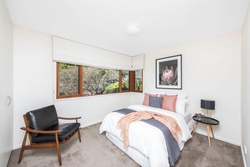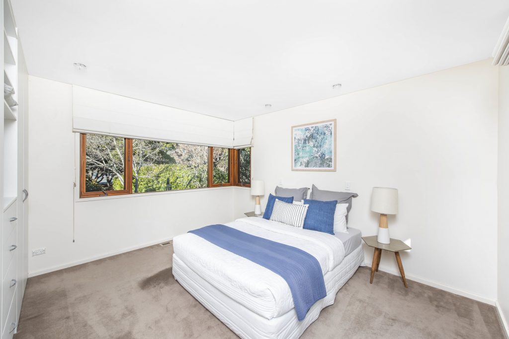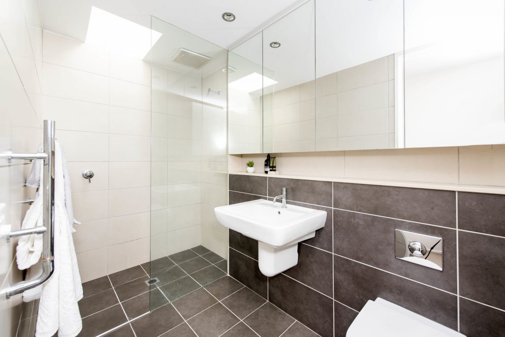 Segregated master bedroom with renovated ensuite – large frameless shower recess and extensive mirrored storage cabinets