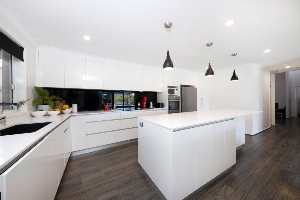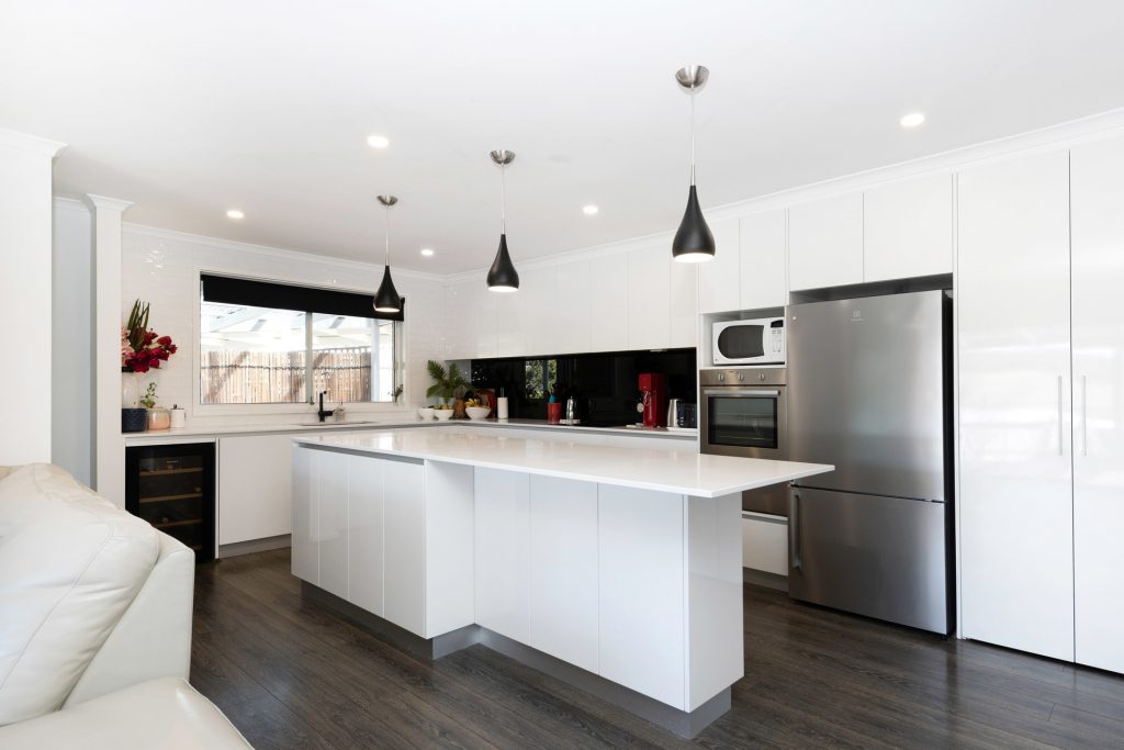 A brand-new modern kitchen is generous in size with stone bench tops, European stainless-steel appliances, wine fridge and ample cupboard space. The kitchen integrates seamlessly with the living and dining room which flows outdoors via double glazed stackable slider glass doors to a fabulous protected entertaining deck, where you can entertain while watching the kids play in the professionally landscaped garden.