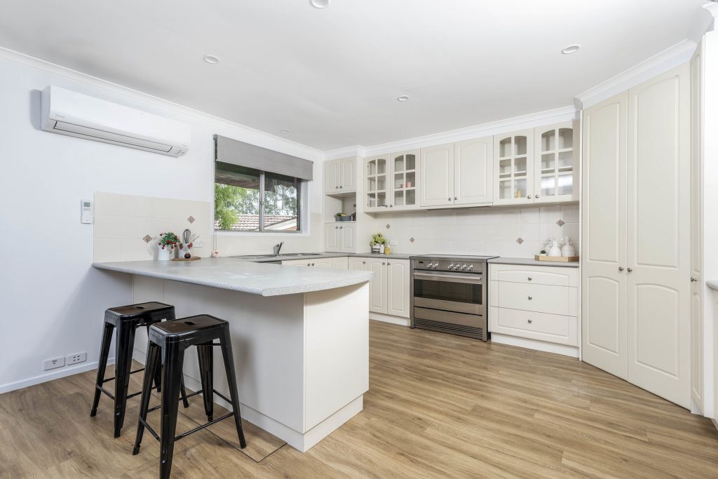 – Evaporative cooling, gas heating unit in living and split system in kitchen (no cooling in bedroom four)