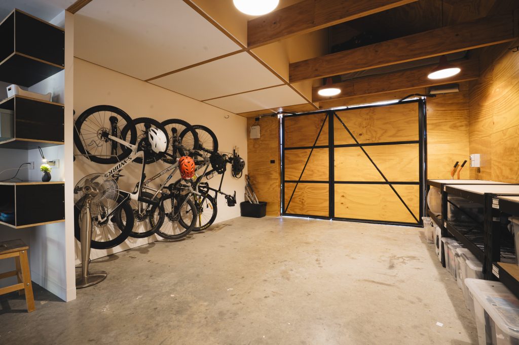 The oversized single garage offers excellent storage options, including mezzanine storage, and houses the laundry at the rear with a large workbench. An electric garage door offers a versatile door for both pedestrian access or vehicle, for added convenience.