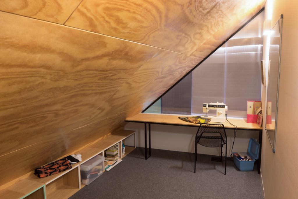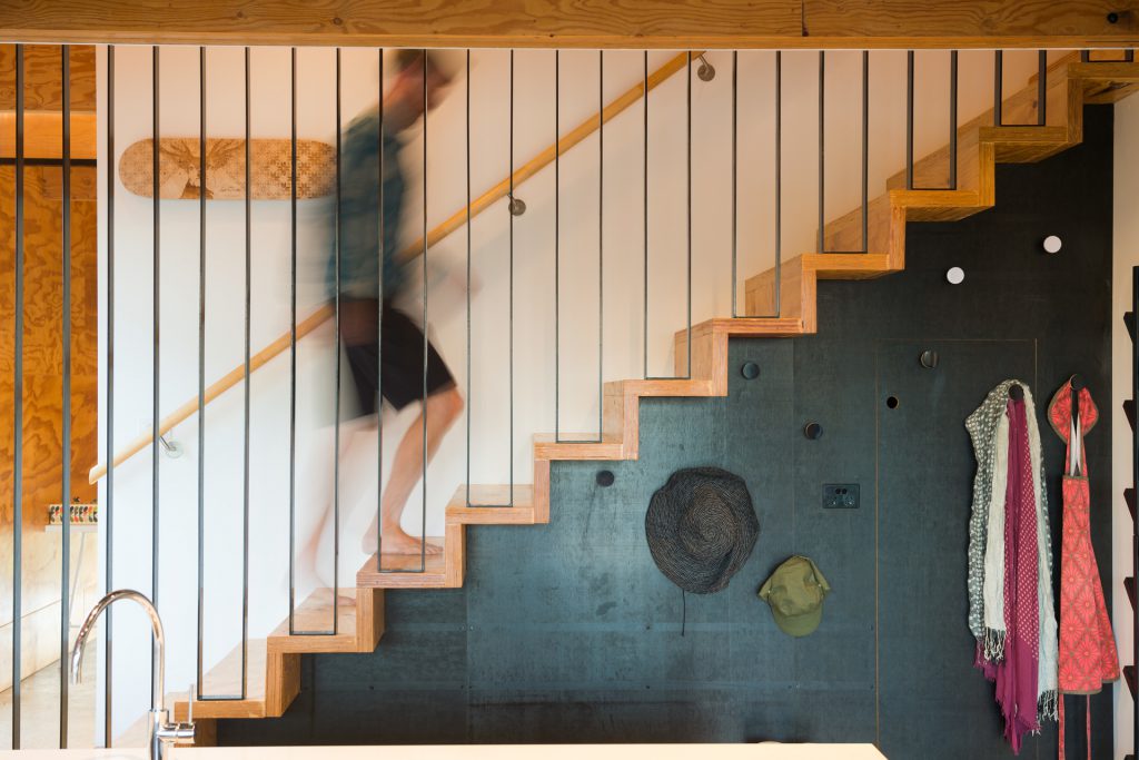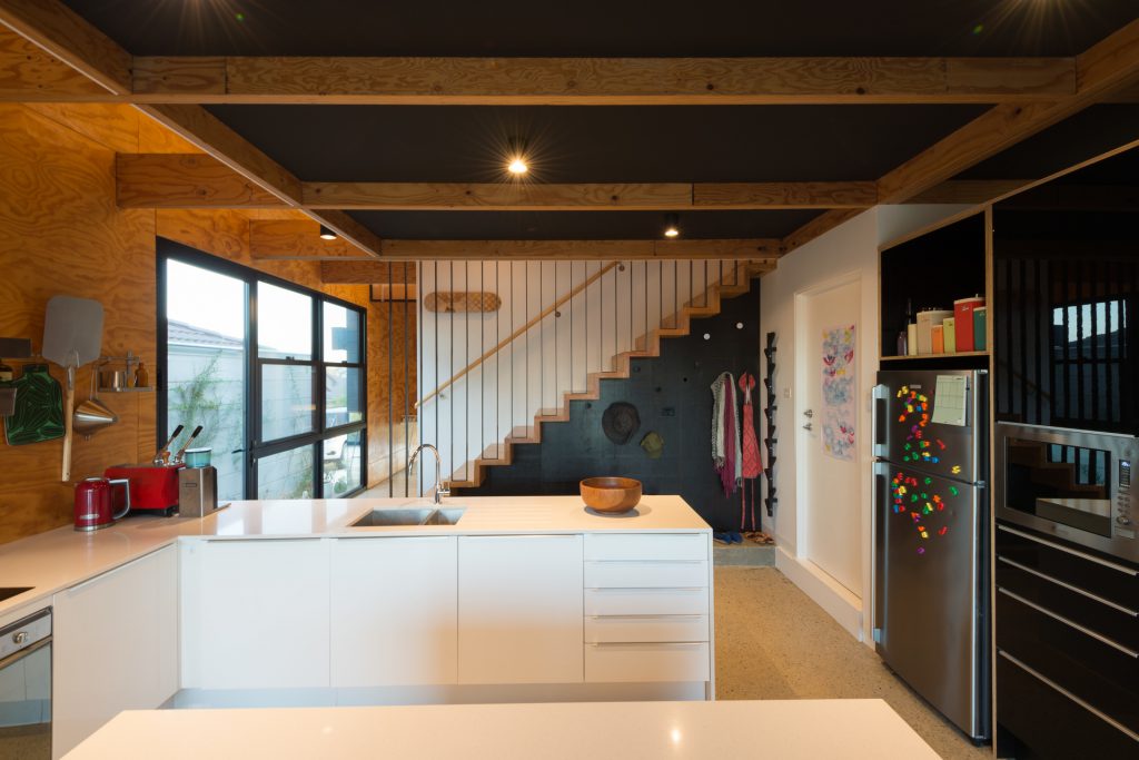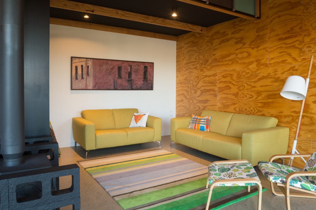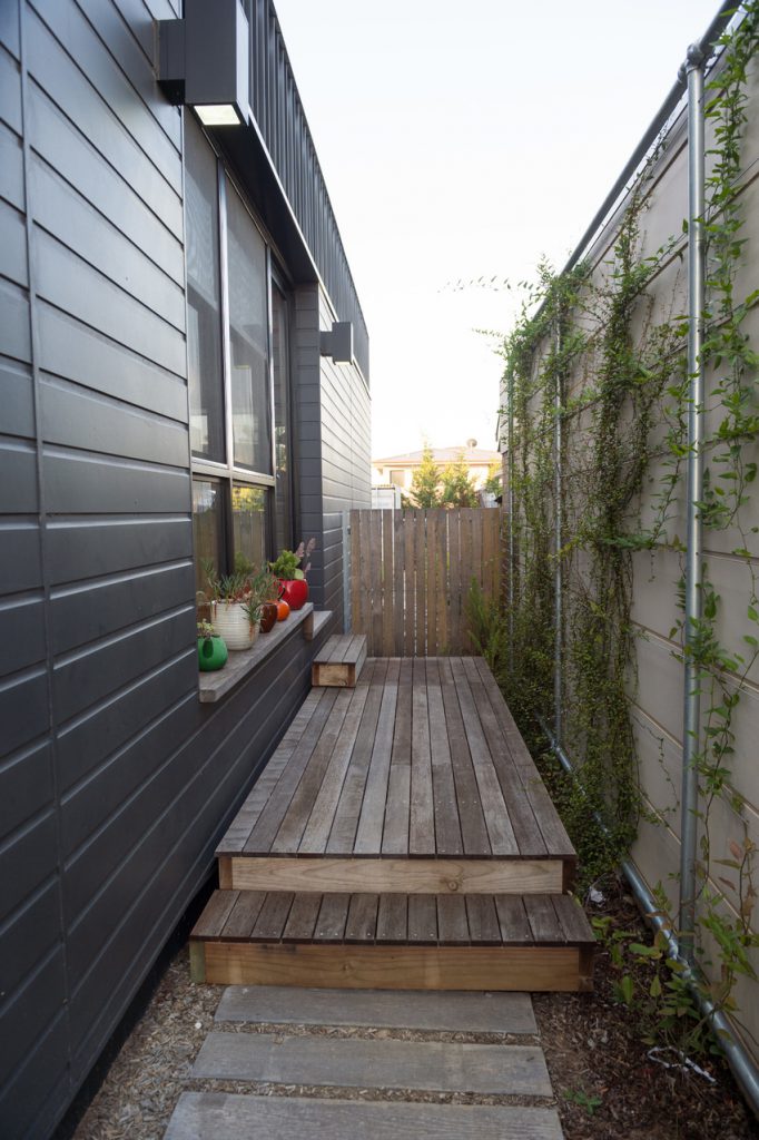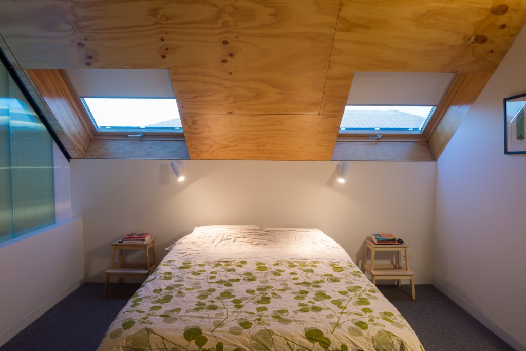 The environmentally conscious features of the home include a 3.5kW photovoltaic system that provides shade for the deck, low energy lighting, hydronic in slab heating, a heat pump hot water system, Velux roof windows, double glazing throughout and a 5000L water tank discreetly positioned beneath the deck.