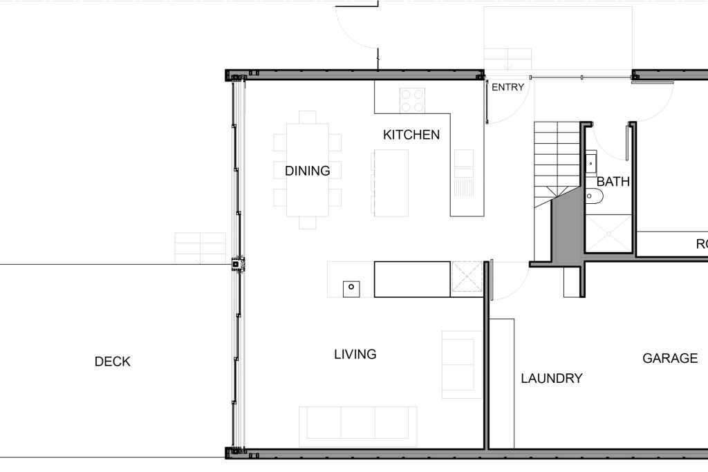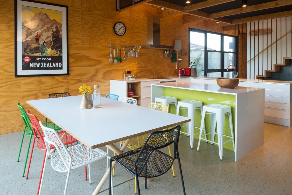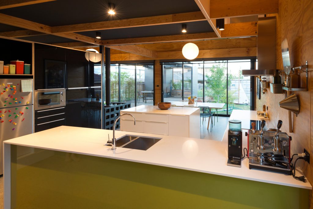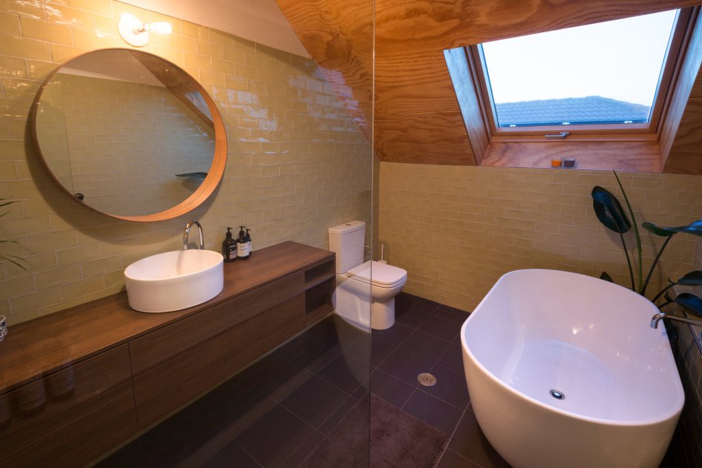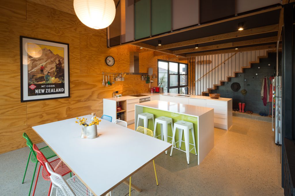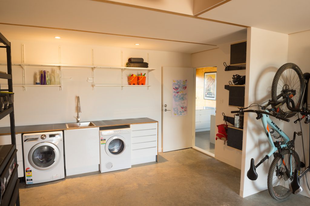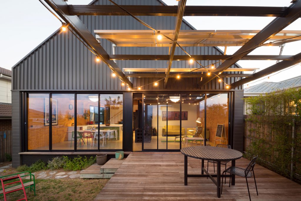 The environmentally conscious features of the home include a 3.5kW photovoltaic system that provides shade for the deck, low energy lighting, hydronic in slab heating, a heat pump hot water system, Velux roof windows, double glazing throughout and a 5000L water tank discreetly positioned beneath the deck.