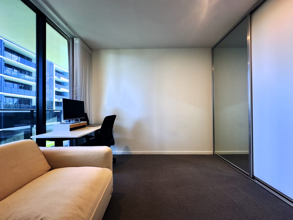 The apartment offers a modern open plan living design, with the living and dining room combing effortlessly. The living room opens up to the large balcony, ideal for entertaining. Included in the apartment is a higher desired study nook, ideal for working from home or studying. Two large bedrooms are on offer, both with built in robes plus heavy curtains and sheer curtains. The master offers a spacious and modern ensuite and the main bathroom is delightfully separated next to the study. There is also a large linen closet and euro laundry for added storage.