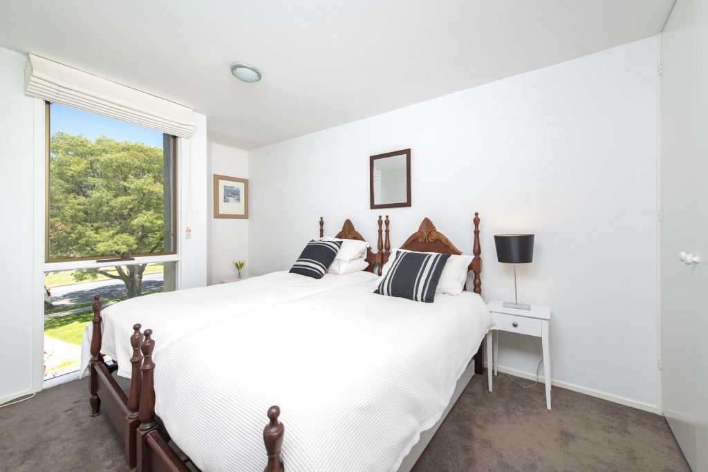 Looking for a lifestyle location? Then here it is. This superb light-filled townhouse in sought-after Macquarie Court combines location, smart design, comfort and style. Its contemporary layout over four levels offers the perfect blend of private and communal areas, with inviting outlooks at every turn. The sun-soaked master bedroom has an ensuite bathroom and a balcony overlooking lawns and gardens. The stylish mezzanine offers a second double-sized bedroom, a full bathroom and study. Generous living and dining area run onto the second balcony, also with garden views. The ground-floor modern kitchen features bench space galore, quality European appliances and a huge walk-in pantry. There’s a gem of a private courtyard, perfect for outdoor entertaining, with easy access to the kitchen. With stacks of storage, separate laundry and single car lock-up garage, just stroll in and put your feet up – or keep walking the few minutes to Kingston, Manuka, the Kingston Foreshore, Lake Burley Griffin or many other of Canberra’s favourite monuments.