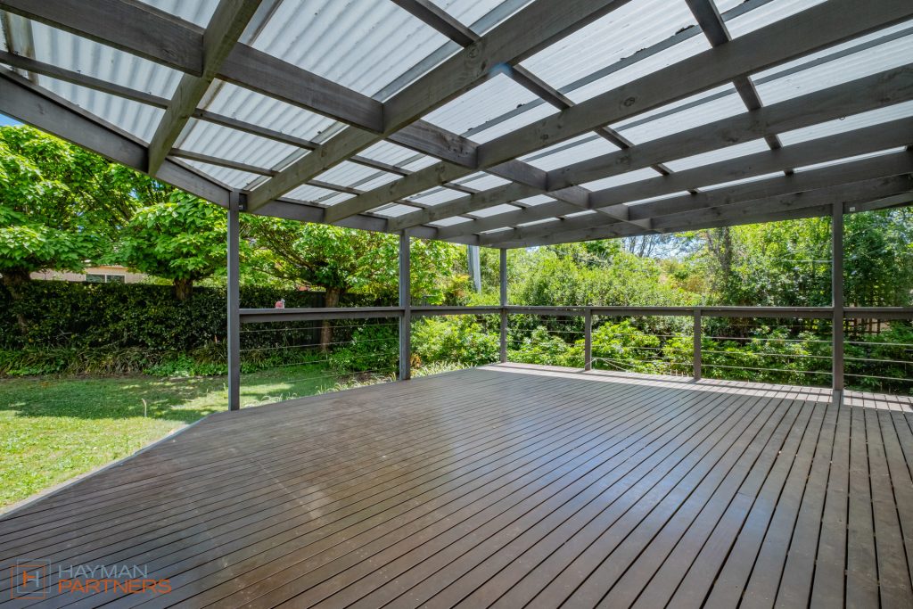 – Covered deck-style outdoor entertaining area overlooking a secure backyard