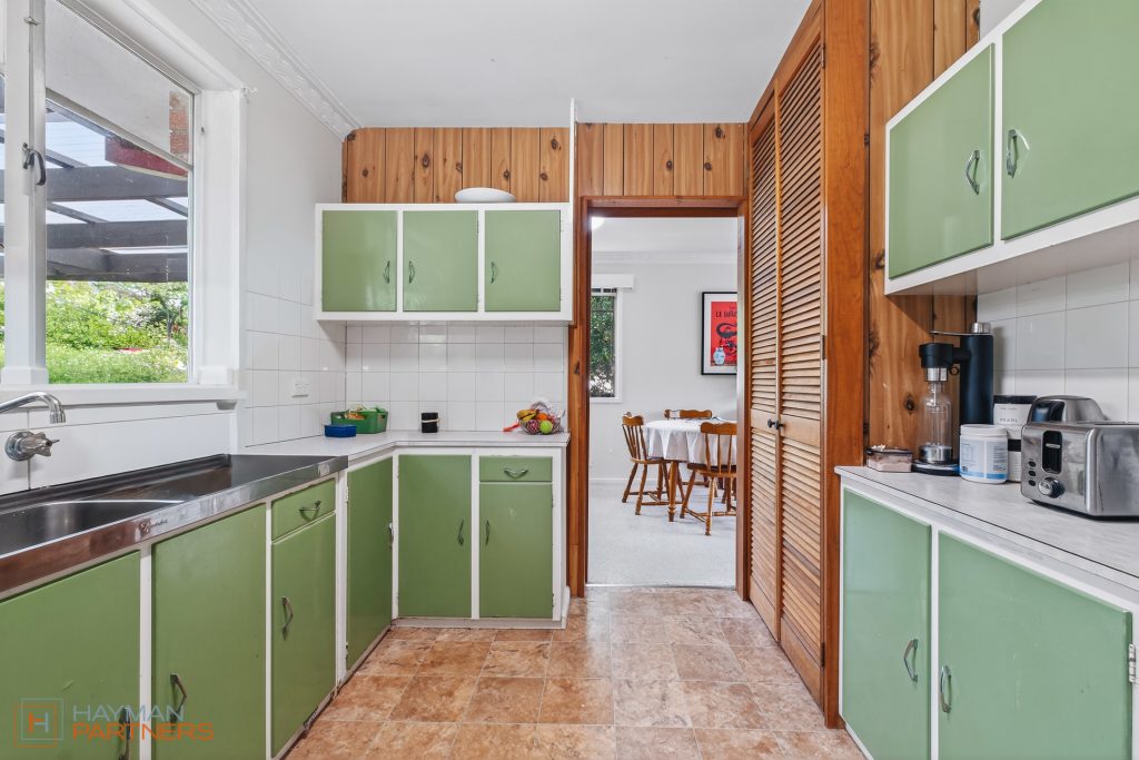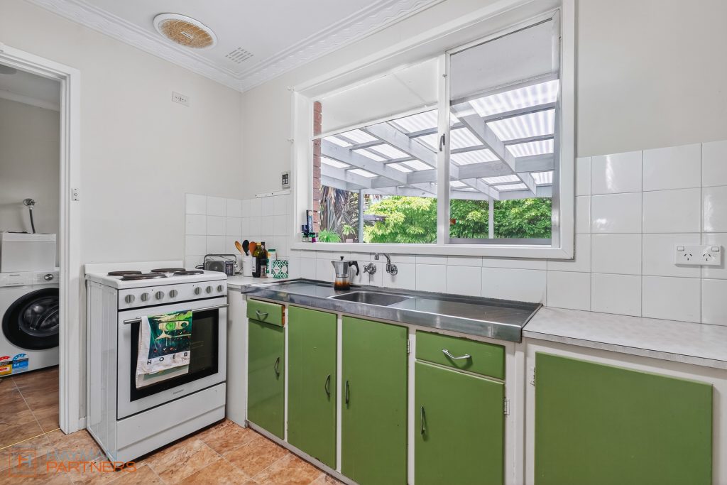 – Functional retro-style kitchen with backyard views and generous benchtop space