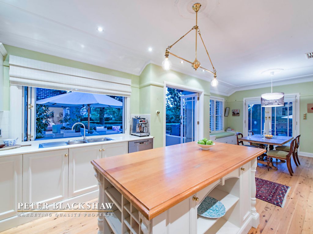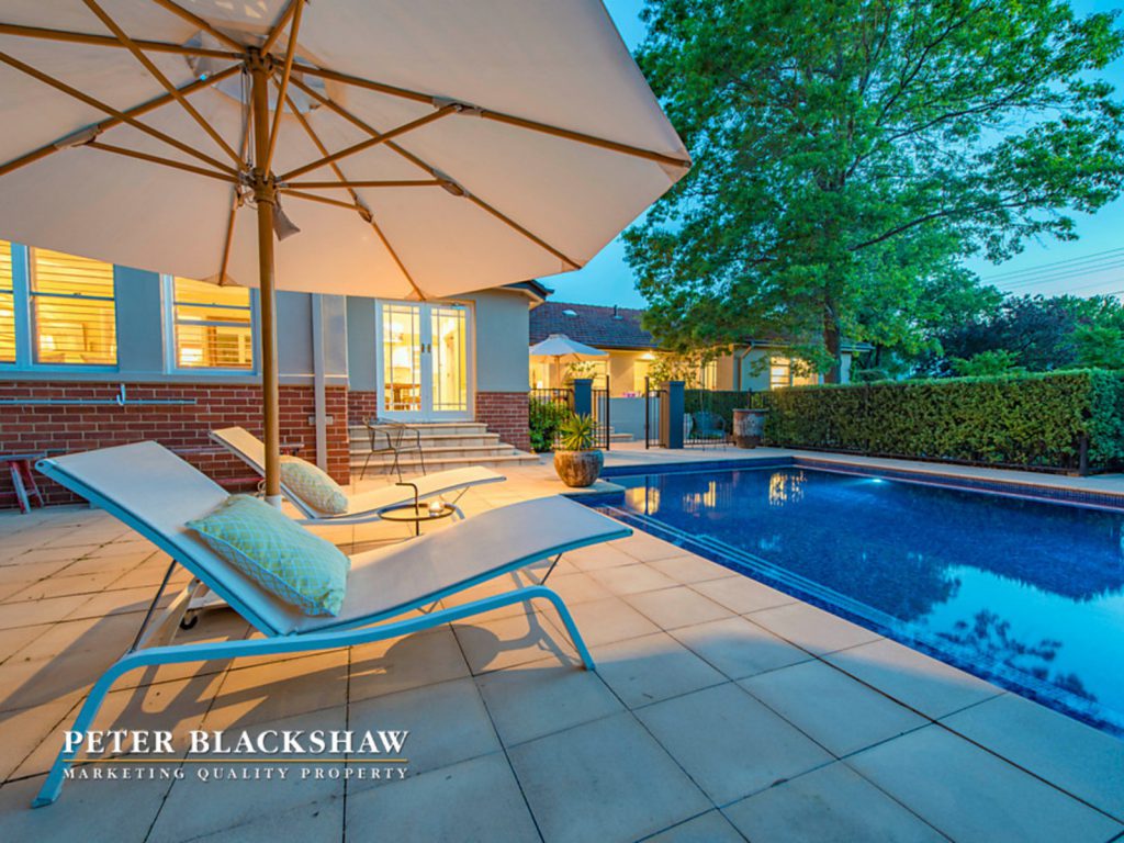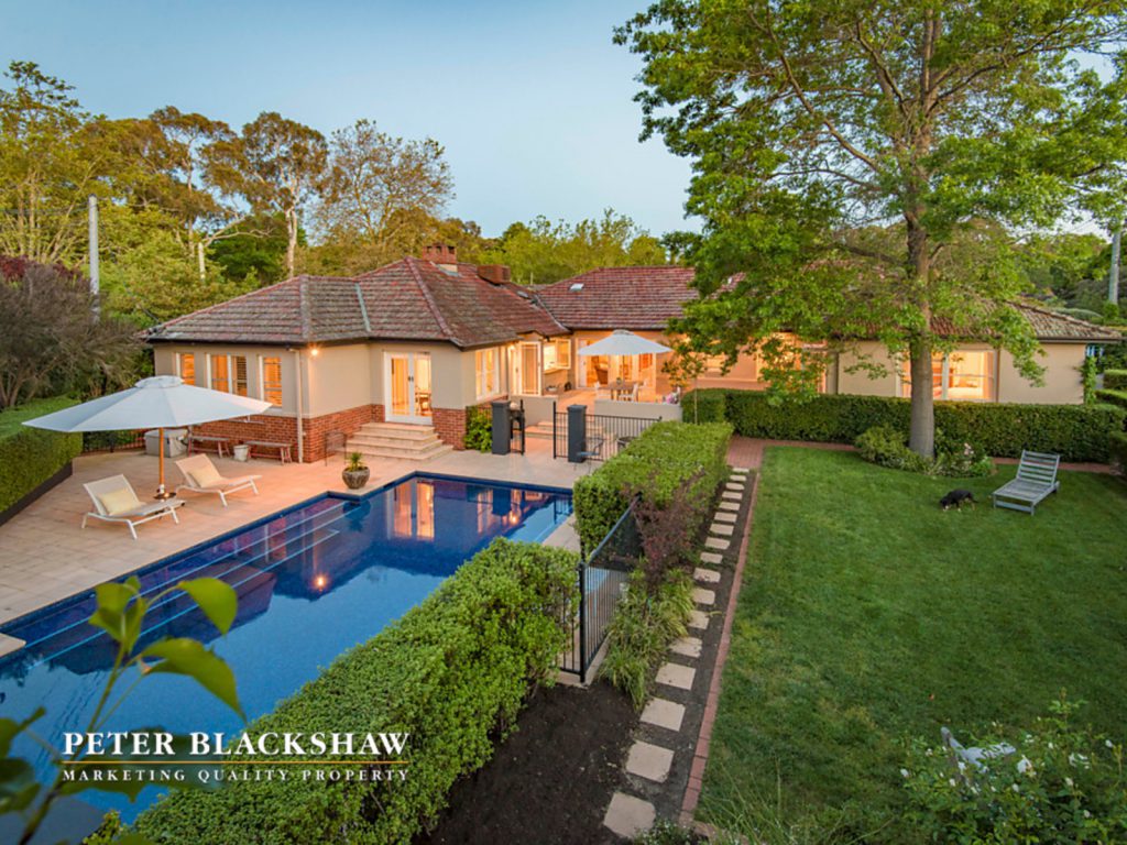 If youre looking for something truly exceptional in a family home, here it is. In a private, tranquil enclave in the very heart of the city, this 1930-built home on a large 1344 square metre block offers exactly the right combination of elegance, quality craftsmanship and modern, high-end inclusions. It has five generous bedrooms, including a master suite with ensuite bathroom and walk-in robe. The remaining four bedrooms have built-ins. Informal living areas include an airy open plan kitchen, family room, swimming pool and expansive outdoor entertaining area, accessible via both master bedroom and family room. Its gracious formal lounge and dining room reflect the homes heritage, with an open fireplace, high ceilings and cypress pine floors. Equally well finished are the bathroom and powder room. To round off the package, the home includes a study, double garage, workshop and plenty of storage space. The homes light-filled aspect offers year-round enjoyment of its lawns and gardens, just a short stroll from the peaceful shores of Lake Burley Griffin or the action of the city. In short, this property is a genuine one-off. A rare opportunity to purchase a very unique family home.