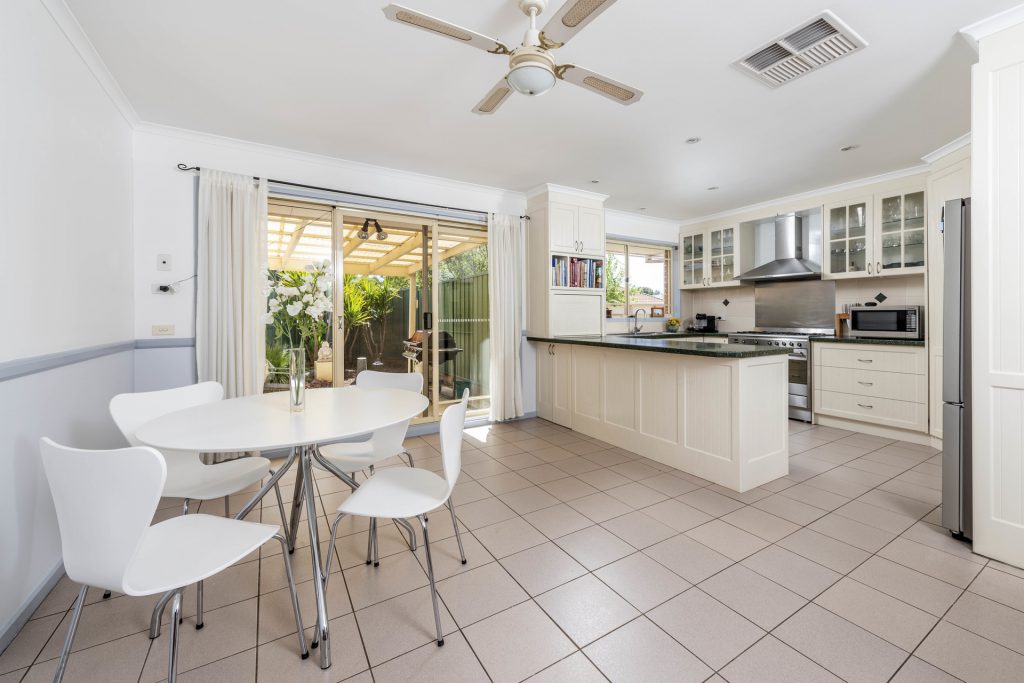 Boasting 150sqm of internal living, the easily accessible single level floor plan has a great warmth and feel. The large outdoor, covered entertaining area flows nicely out onto the pool, providing the perfect platform for entertaining. Whether you enjoy outdoor pool parties, or cold winter nights in front of a roaring fireplace, the possibilities are endless. The family’s accommodation features four large bedrooms, each with built in robes featuring brand new sliding mirror doors. The full length windows allow for private views of the manicured garden.
