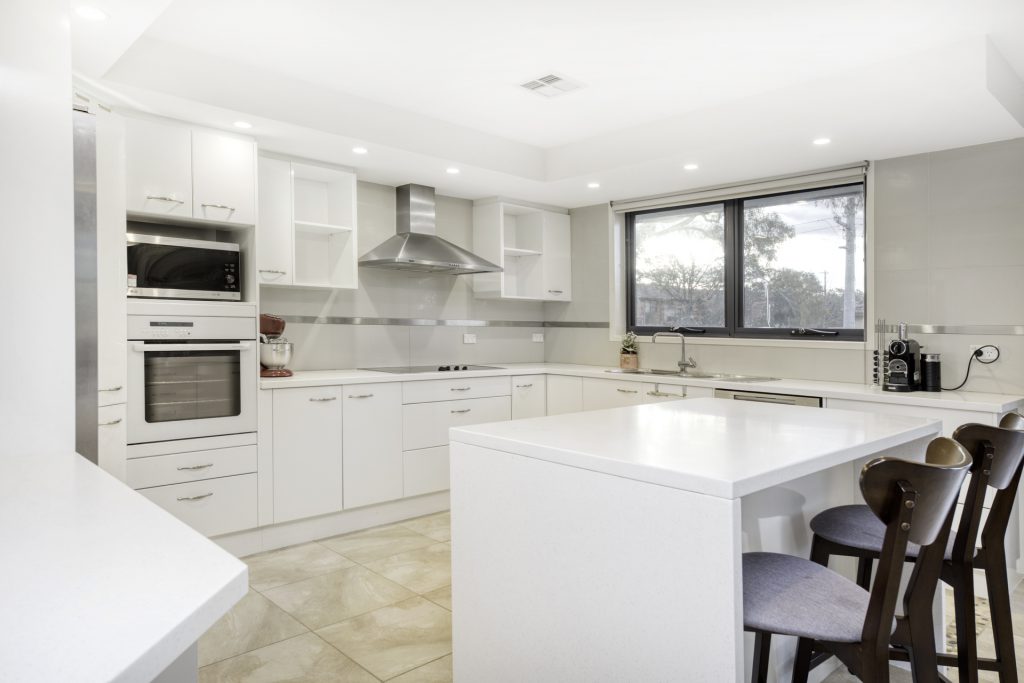 Designer kitchen with island bench and soft close draws