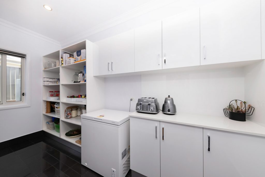 The well-equipped kitchen with waterfall stone bench tops, great storage including a butler’s pantry, 900 mm gas hob and electric oven, stainless steel dishwasher and plumbed fridge cavity will have you whipping up culinary delights with ease. The breakfast bar incorporated in the island bench is ideal for a quick afterschool snack.