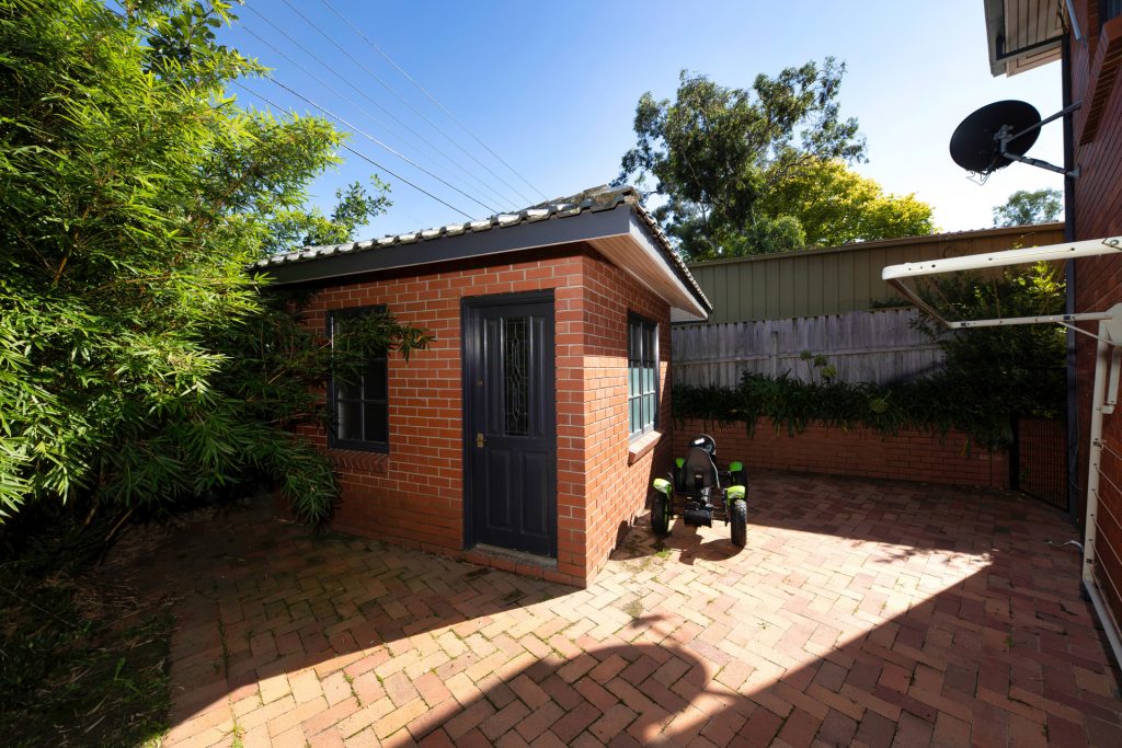 Garage with auto door plus brick workshop or secure storage room and off street parking for cars and trailer.