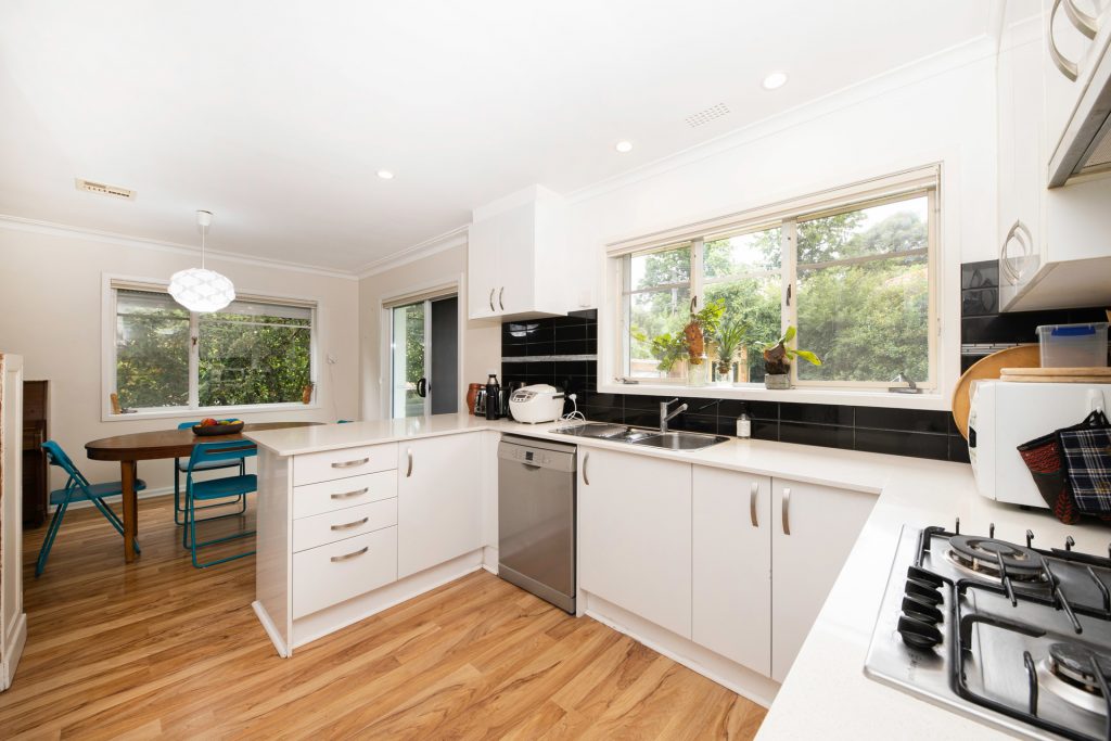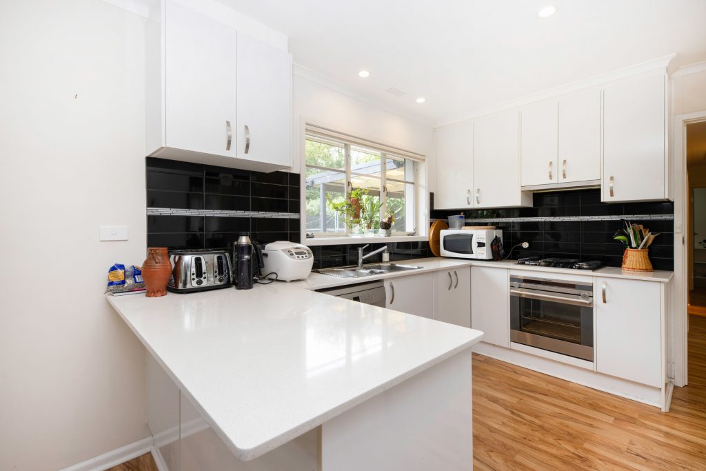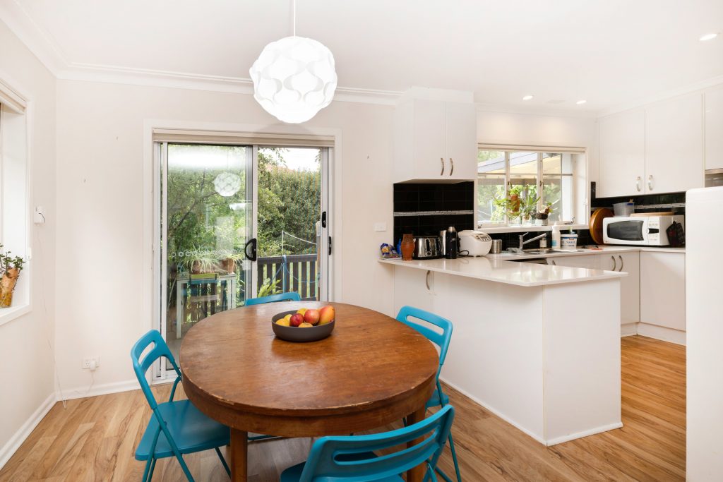 The floor plan includes an elevated L-shape lounge and dining area which adjoins the updated kitchen that overlooks the rear entertaining area and gardens. Accommodation is provided by three bedrooms supported by an updated bathroom.